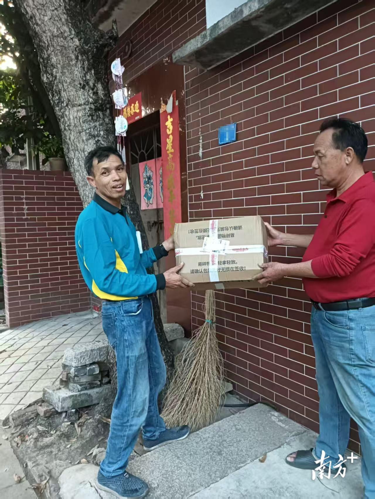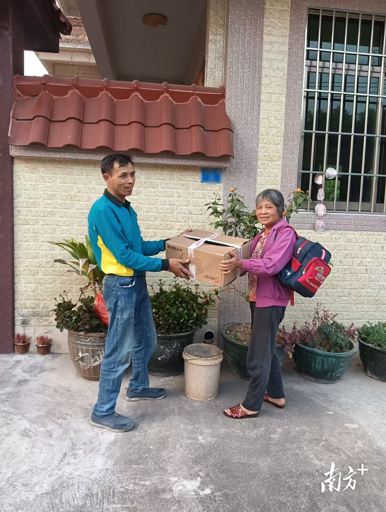 平沙岛居民区芬芳首次在家门口收到快递包裹。