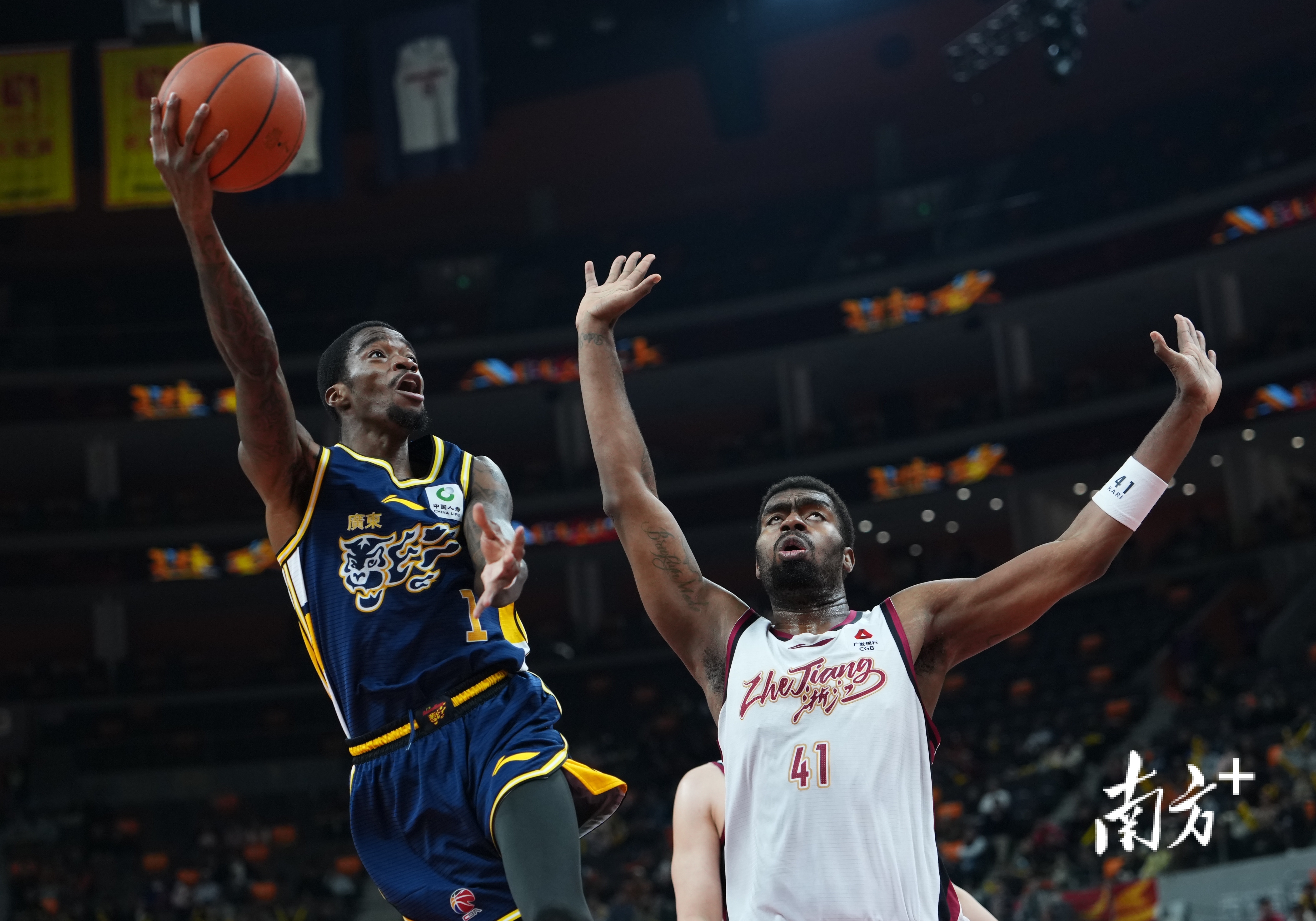 次节再战,广东队外援萨姆纳挺身而出,凭借犀利的突破多次造杀伤,一度将分差扩大至14分。但浙江队并未崩盘,达卡里·约翰逊在内线强势发力,联手约克的外线三分展开反扑,逐步蚕食分差。半场结束时,广东队领先优势缩水至5分,以43-38暂时领先。