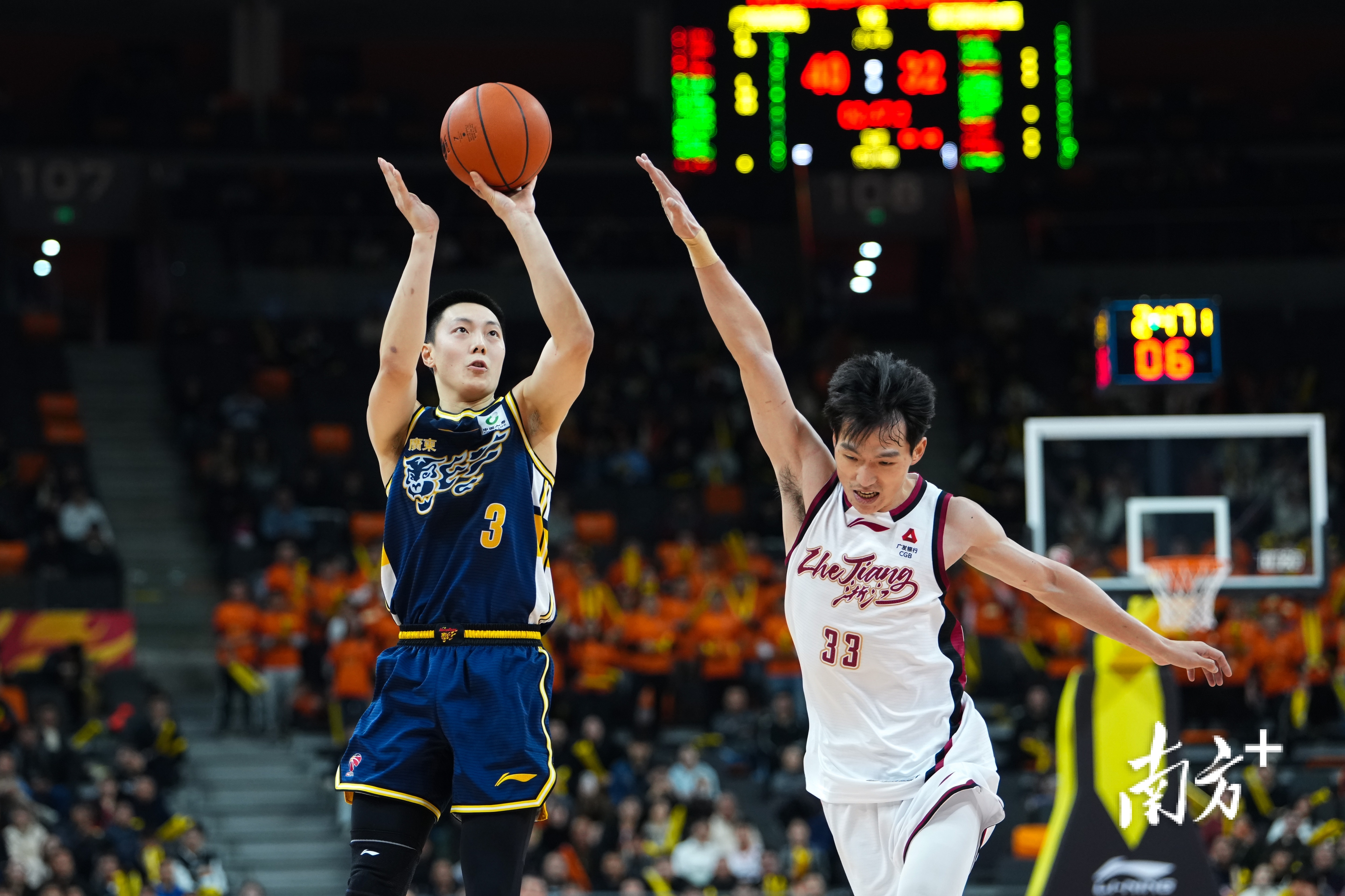 第三节成为比赛的转折点之一。浙江队通过防守调整限制广东队进攻节奏,约翰逊持续在内线施压,而广东队则依靠奎因的三分和徐杰的快攻稳住局势,一度将分差重新拉开至16分。关键时刻,浙江队打出9-0的反击波,陆文博命中三分、吴前打成3+1,将分差迅速缩小。三节战罢,广东队仅以64-58领先6分。