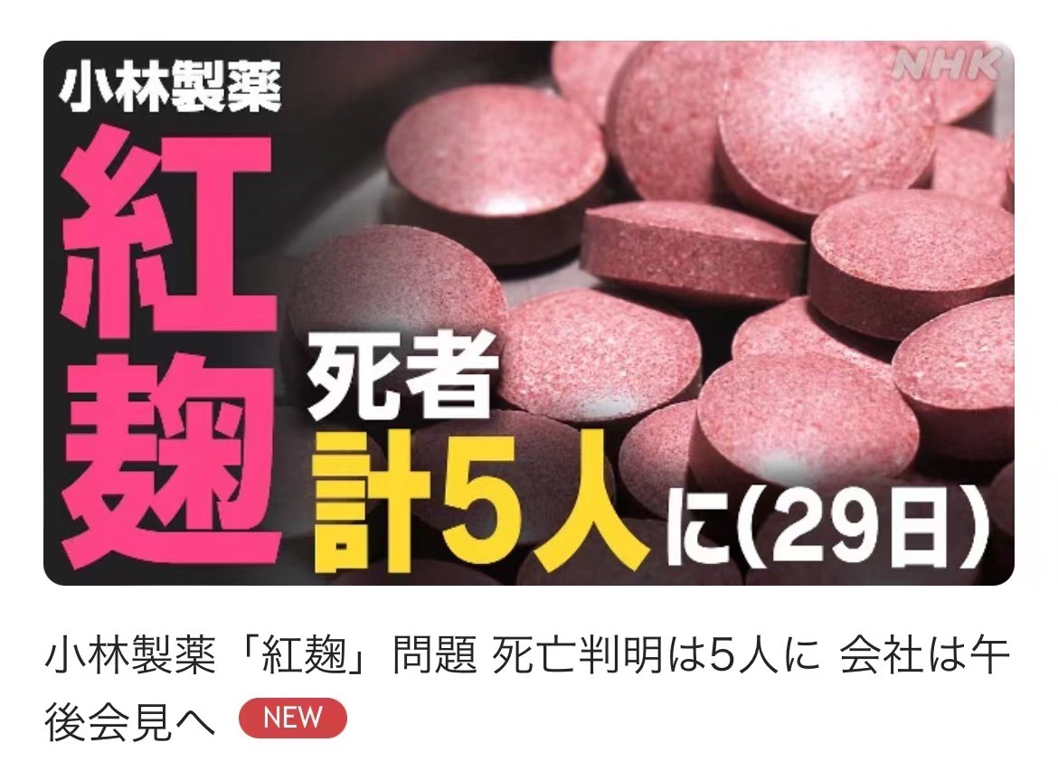 日企小林制药红曲保健品事件持续发酵。