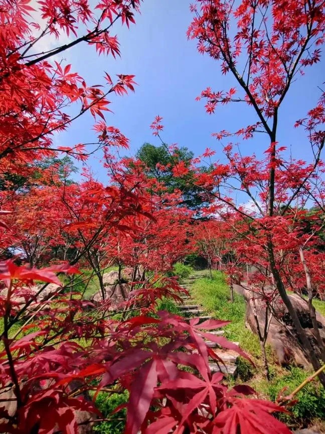 广州市帽峰山森林公园红枫如火。