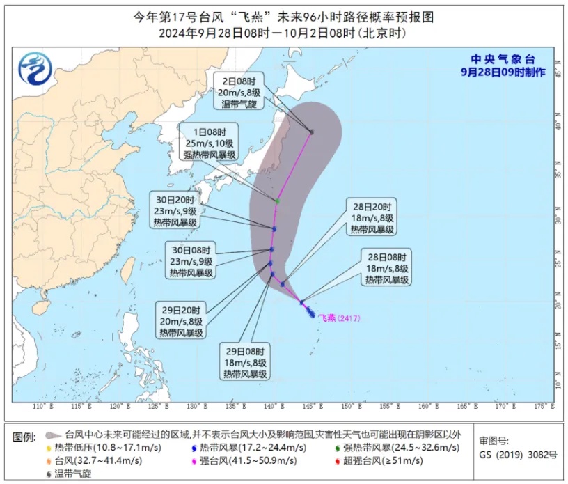 除了“山陀儿”,第17号台风“飞燕”目前仍在活跃中。