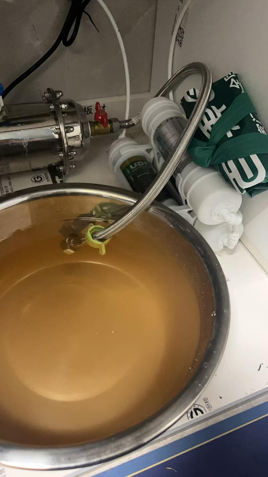 据业主严先生表示,交房到现在将近两年,“一直还是很浑浊的状态”,有安装净水机的业主,一个月就要更换一次滤芯,而且换出来的滤芯“都是很黄的”。严先生告诉南都记者,小区的自来水由附近市政道路一条主管引入,然后通入小区,发现有浑浊现象后,今年3月份开始整改,直到今年8月份交付,“把小区内所有不合格的镀锌管换成了不锈钢管。水务局都已经发现问题,他们才整改的,我们原来小区的所有管道也改掉了,现在就主管没改。”“换之后水质有那么一点点改善。”严先生说。