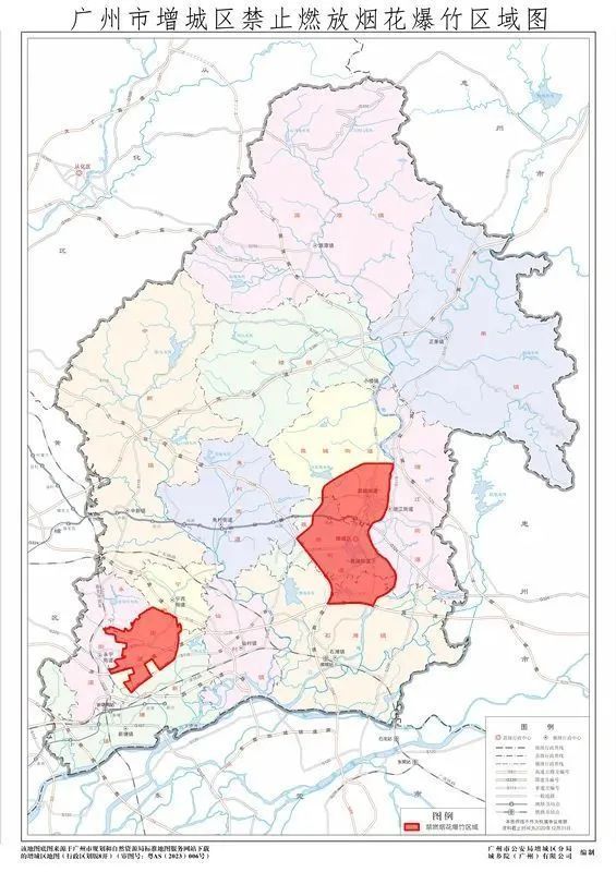 2023年12月27日,增城区发布《增城区人民政府关于设定增城区禁止燃放烟花爆竹区域的通告》,通告自2024年1月1日起施行,有效期5年,明确以下区域禁止燃放烟花爆竹:由东至增江西岸、南至济广高速公路、西至珠三角环线高速公路、北至广汕公路北绕线合围的闭环范围内;增城经济技术开发区核心区范围内。