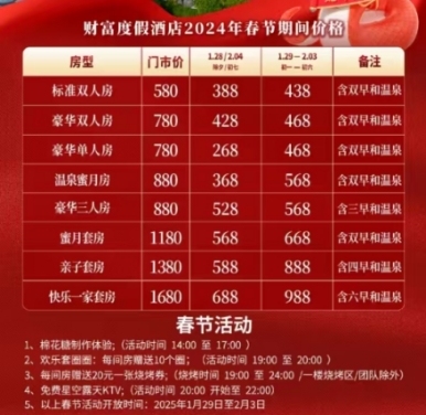 春节优惠:特色房套餐活动价499元、园景房套餐599元等