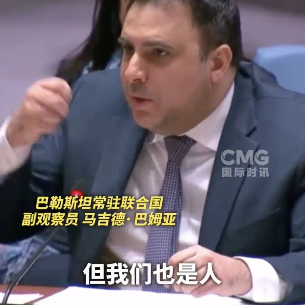 当地时间11月20日,在联合国安理会加沙停火决议草案再一次遭美国独家否决后,巴勒斯坦常驻联合国副观察员马吉德·巴姆亚在发言时气愤得捶桌子。他表示,国际社会不应就这样“对巴勒斯坦人的死亡习以为常”。巴姆亚对美方代表说:“也许对某些人来说,我们拥有错了国籍,信错了信仰,生错了肤色。但我们也是人,我们应该被平等对待!”