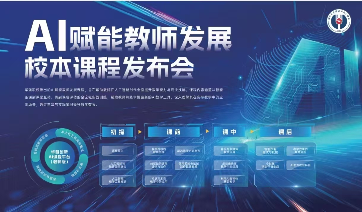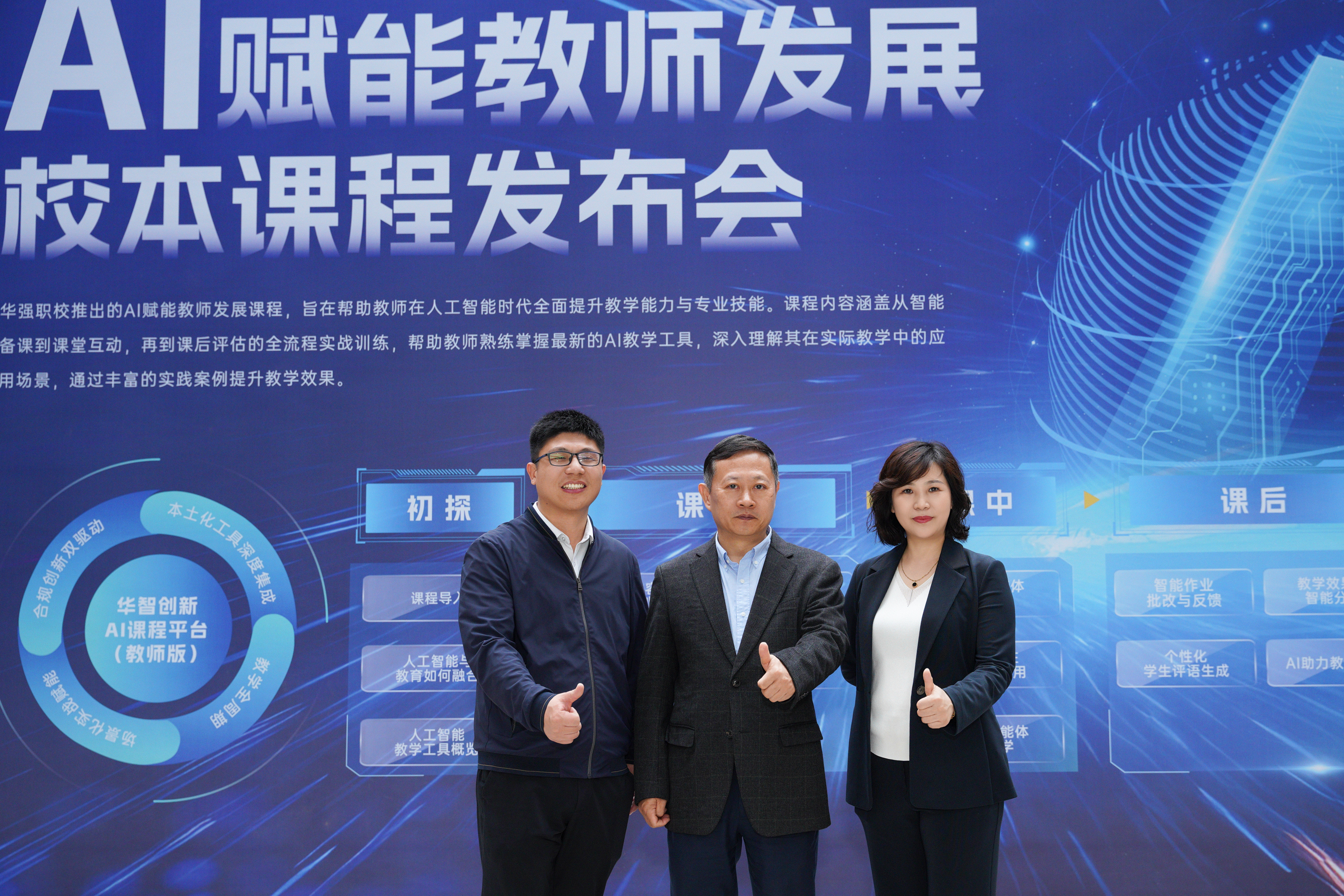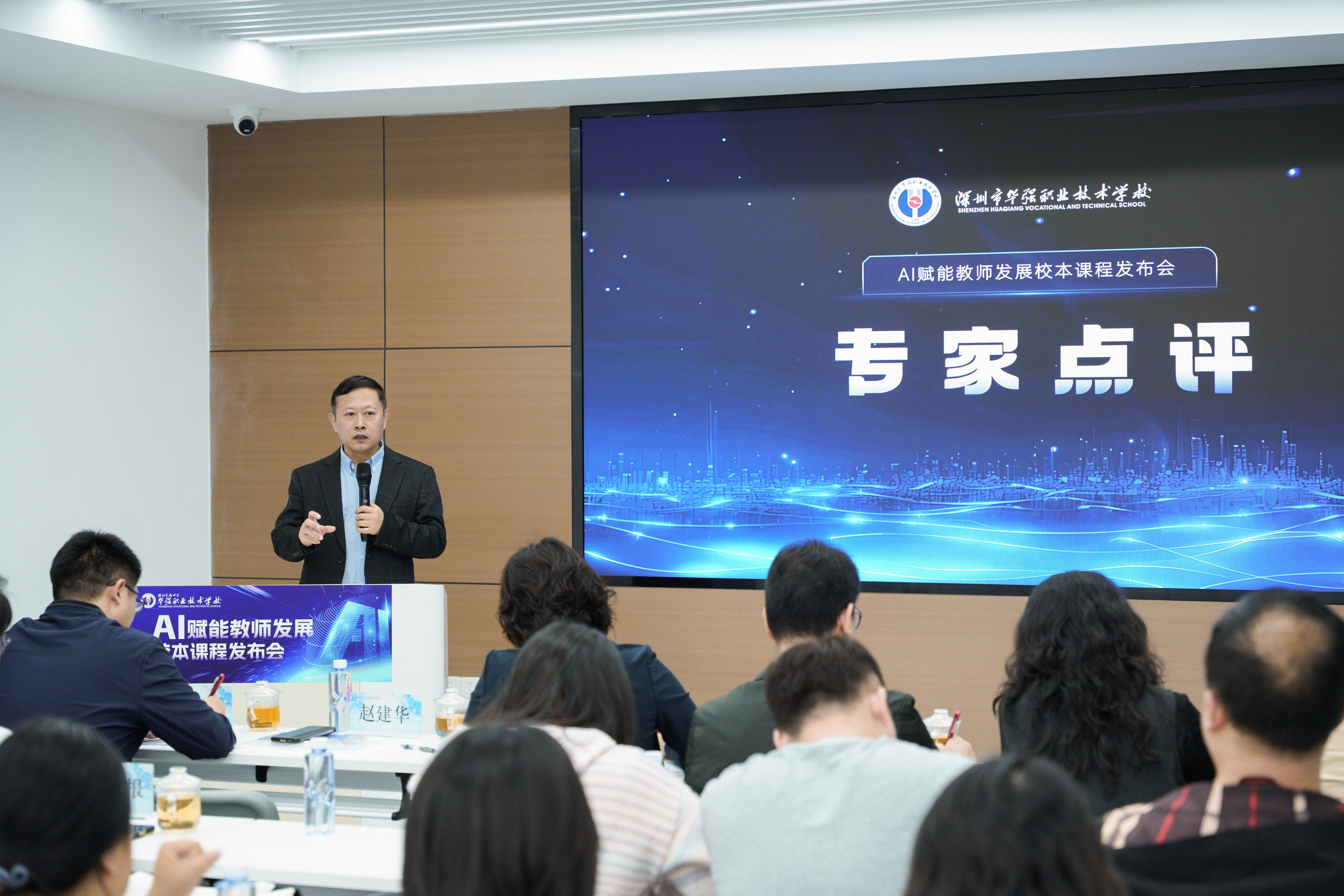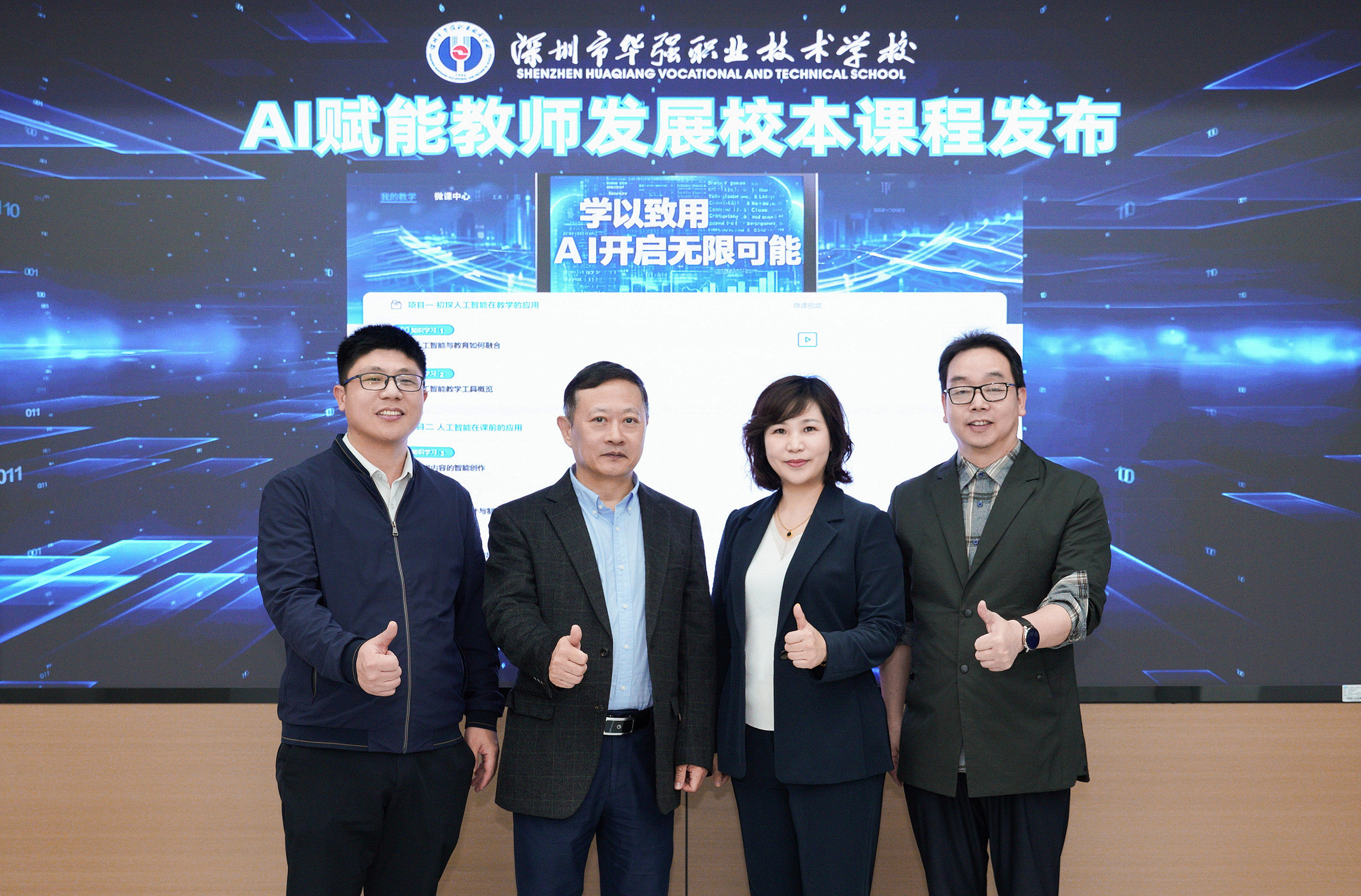 随后,南方科技大学人工智能教育研究中心主任赵建华教授、华强职校党委书记贺英超、副校长任志豪以及教学处主任王朝蓬共同启动课程发布,宣告AI赋能教师发展校本课程正式上线。