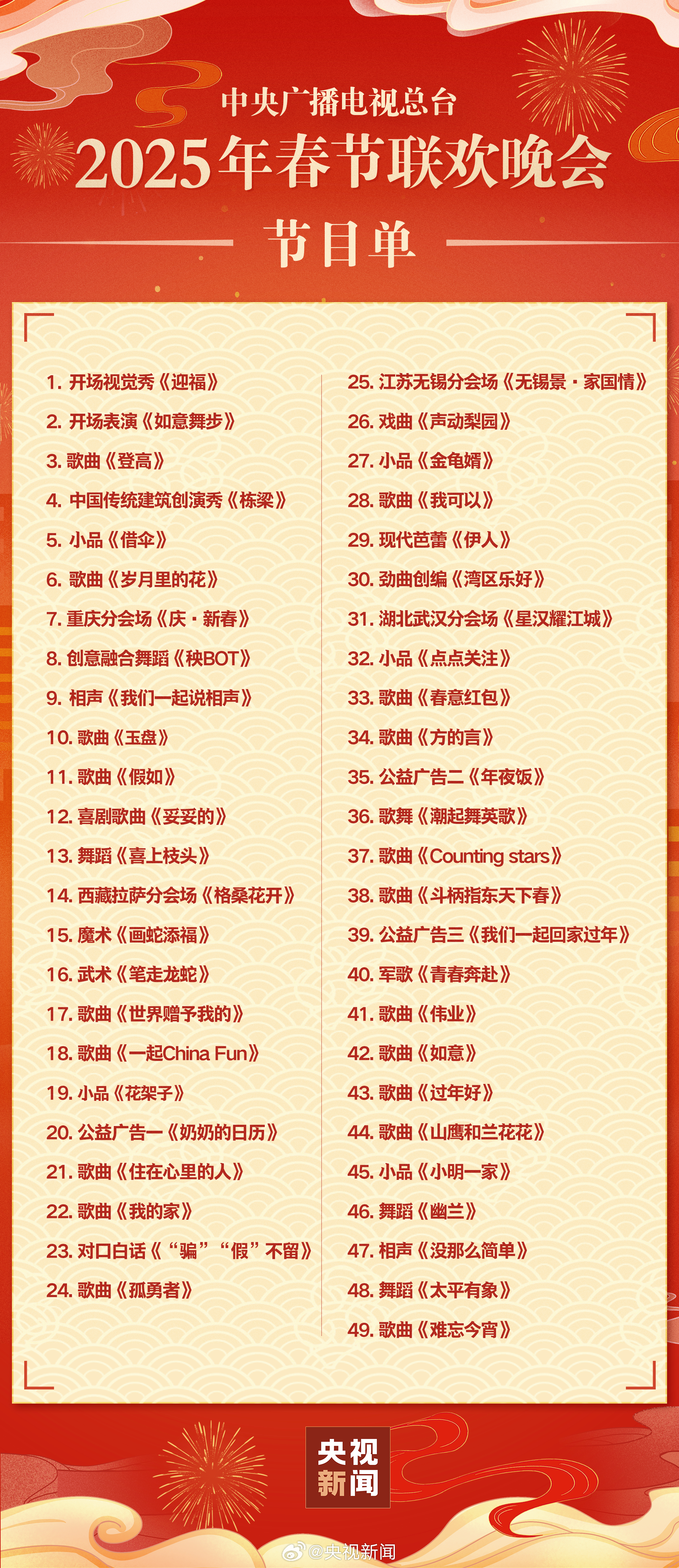 官宣!中央广播电视总台《2025年春节联欢晚会》节目单发布