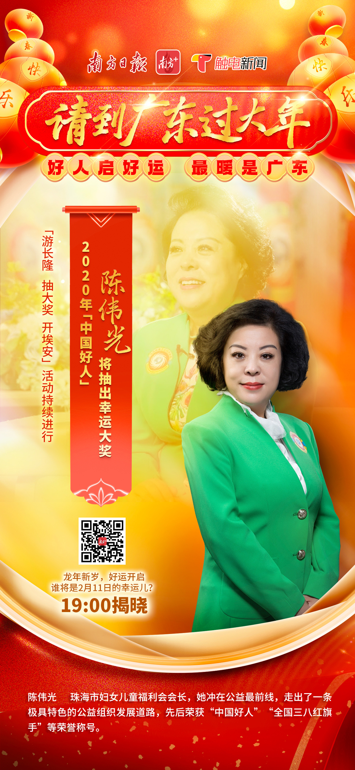 2月11日(初二)开奖活动将于19时举行,“中国好人”陈伟光将开出幸运大奖!点击预约直播,一同见证第三位“锦鲤”诞生!