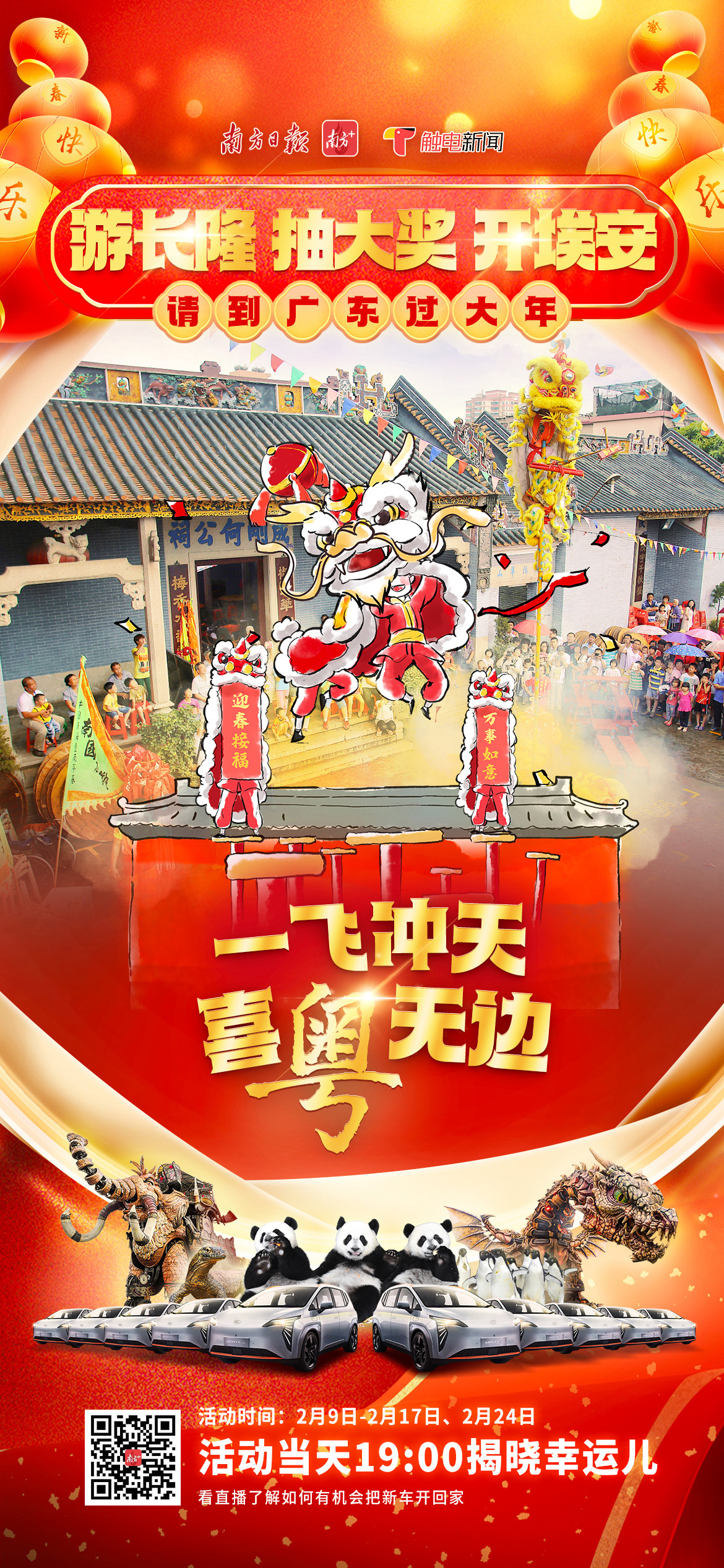 好人启好运,最暖是广东!2月9日至2月10日,由南方+、触电新闻主办的“请到广东过大年之游长隆、抽大奖、开埃安”活动连续开出两份大奖,身份证号为32****198806292248的游客与身份证号为65****197906029011的游客分别获得一辆全新广汽埃安AION Y Plus智能纯电车的使用权。(精彩回顾)