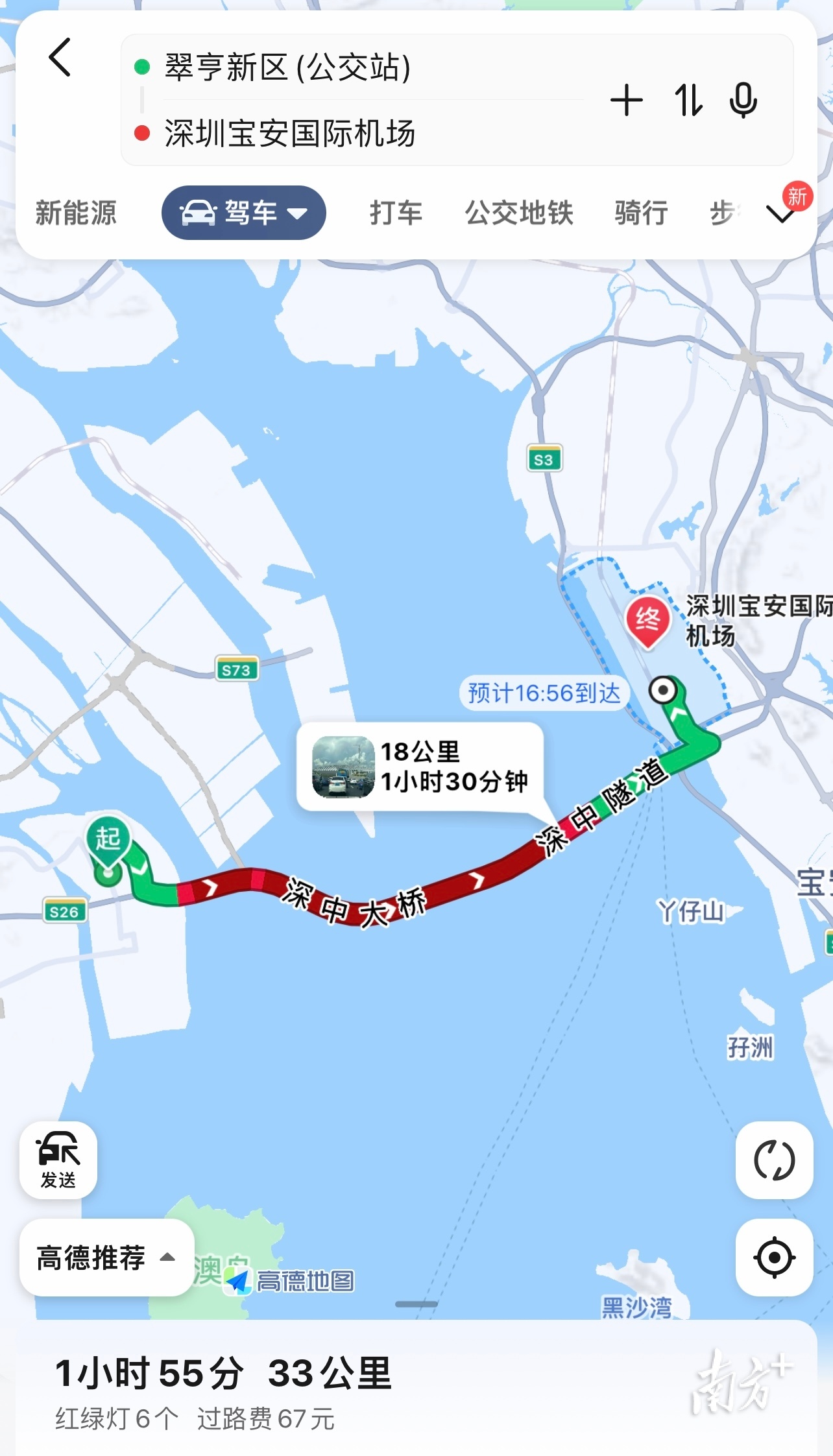 7日下午3点,中山前往深圳导航情况。