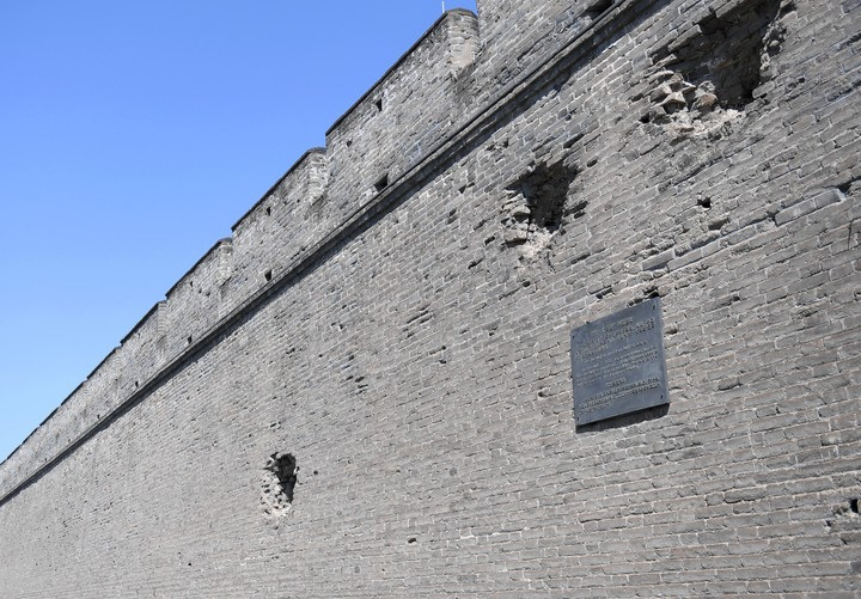 宛平城城墙上的“七七事变”弹坑遗址。新华社记者 张晨霖 摄