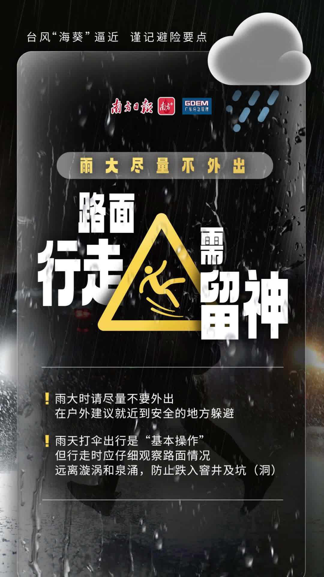 今年第11号台风“海葵”于9月5日5时20分前后在福建东山县沿海登陆,6时45分前后在潮州饶平县沿海再次登陆,登陆时中心附近最大风力有8级,将给我省粤东、粤北地区,特别是粤东沿海带来严重风雨影响。