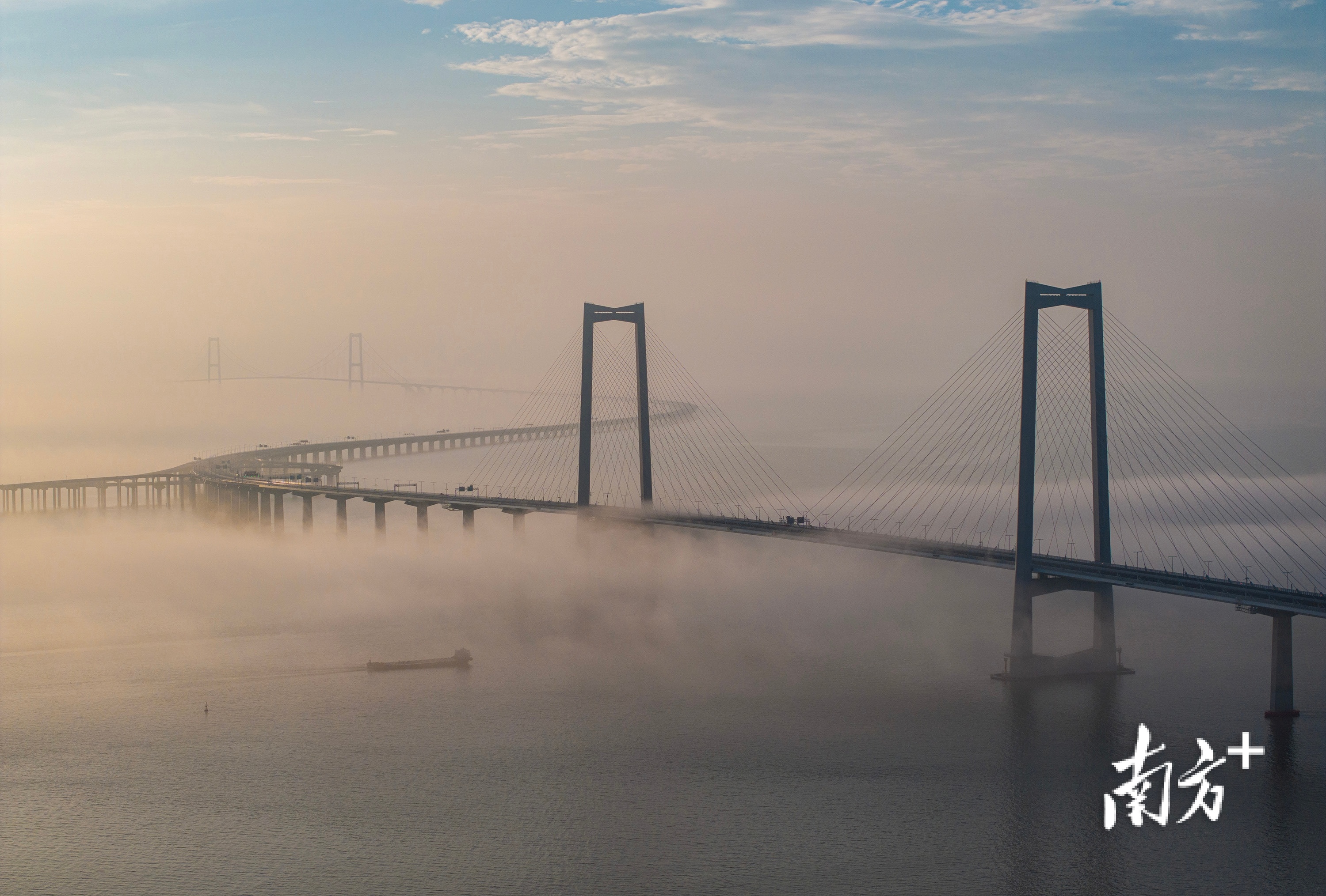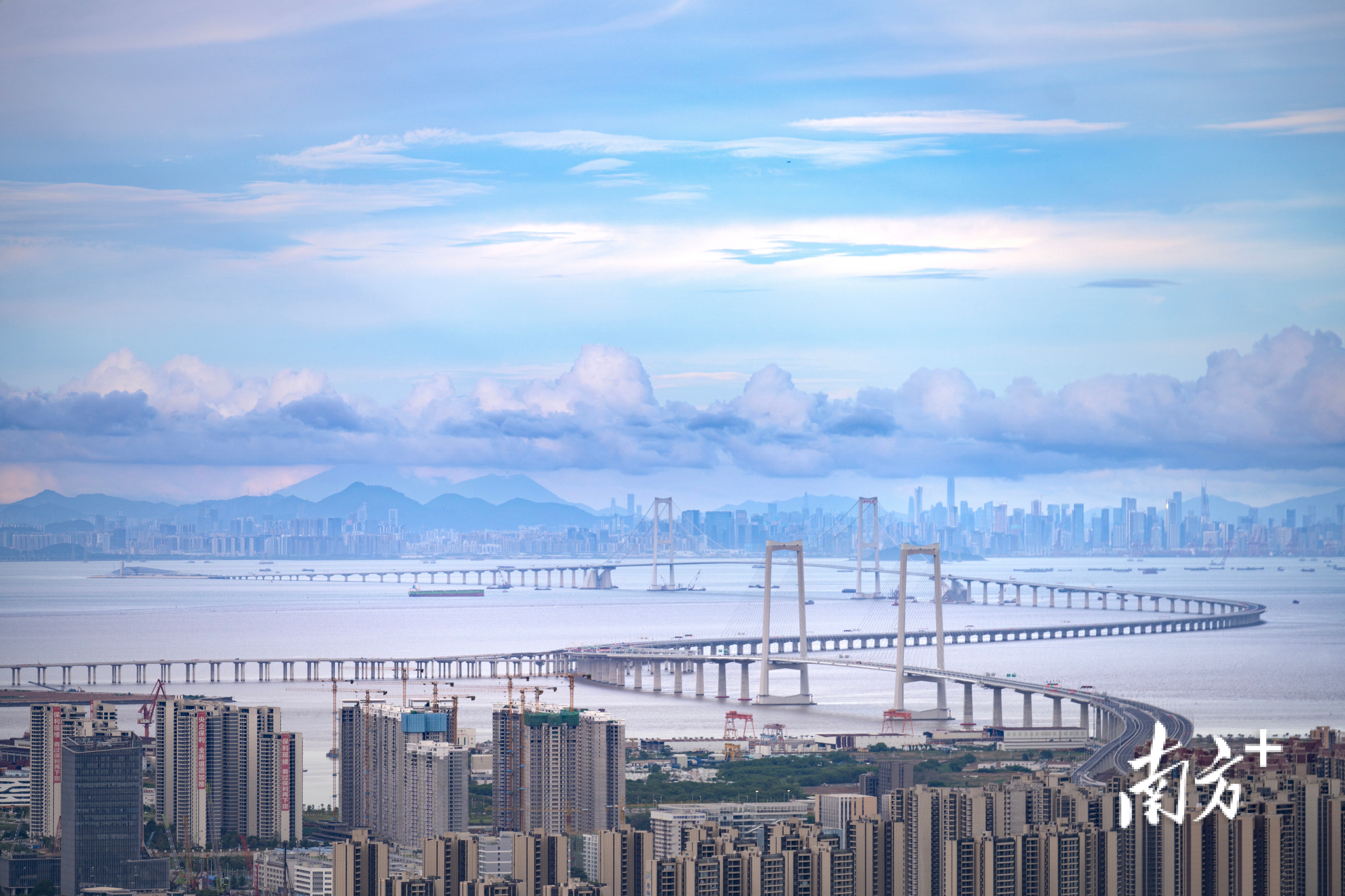 伶仃洋上,海天交融。铺展在这片水域周边的城市,如同颗颗明珠,璀璨夺目。