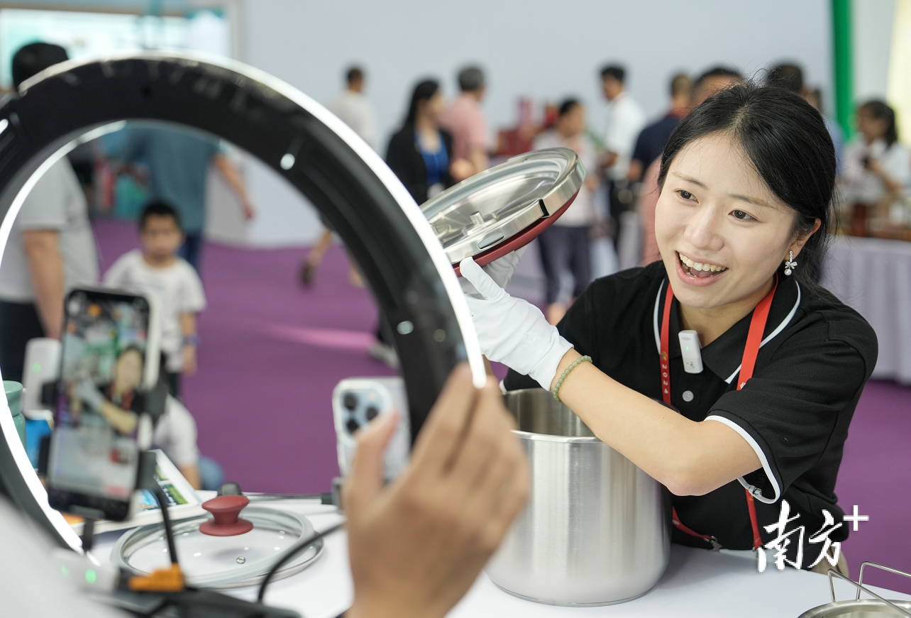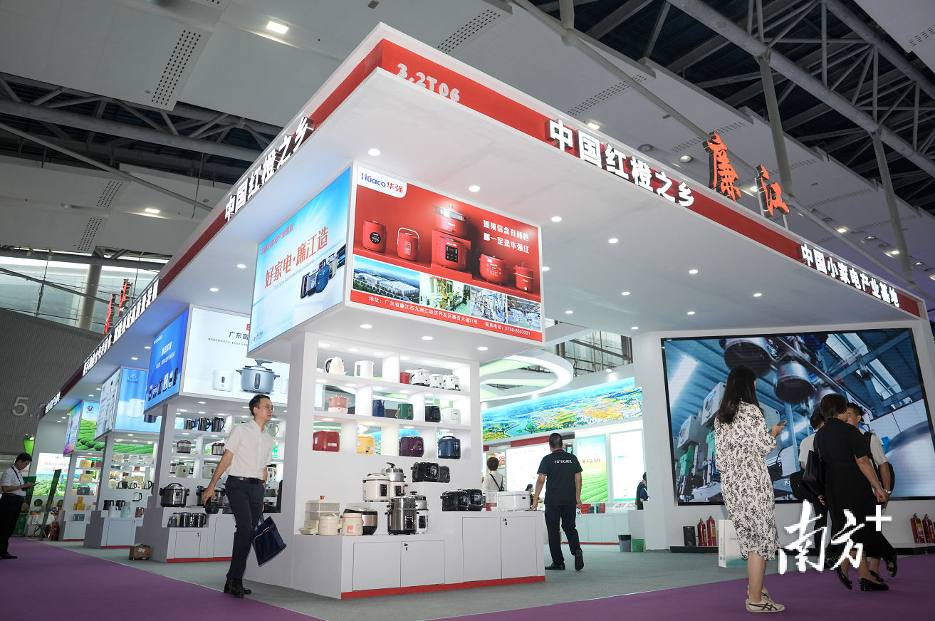 在湛江廉江市展区,电饭煲、热水壶等小家电一应俱全,还摆放了湛江鸡、廉江红乌龙茶、香米等各色农特产品。