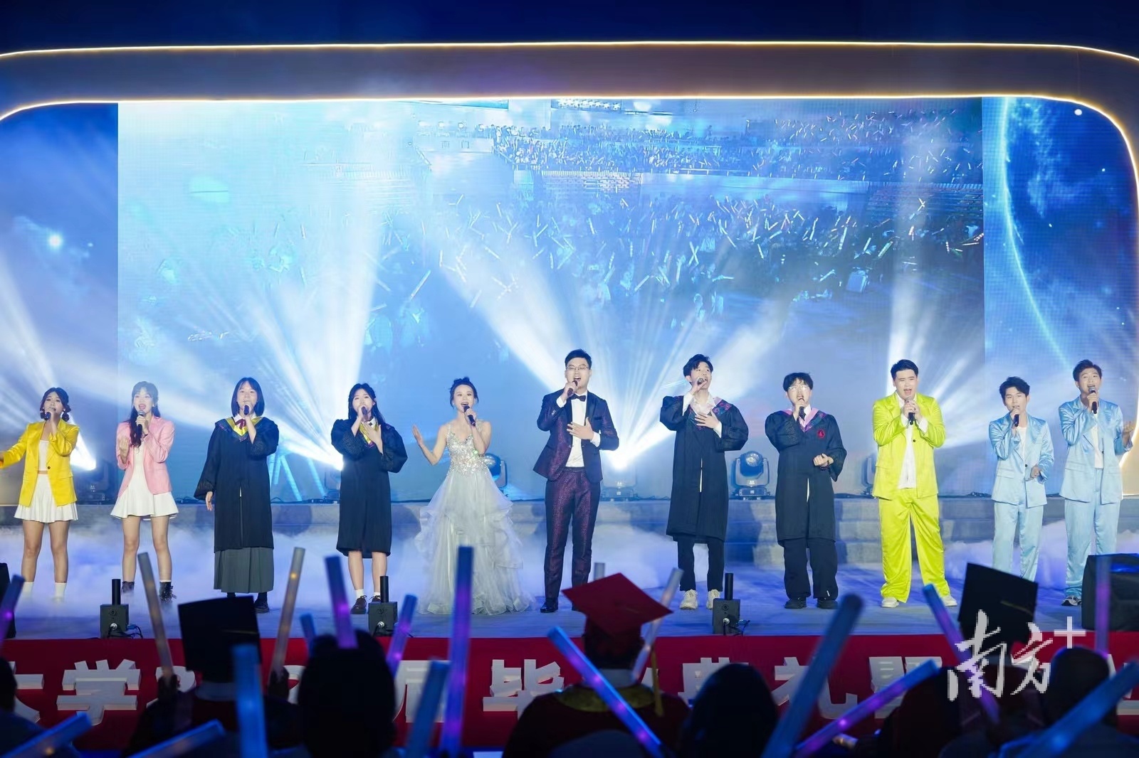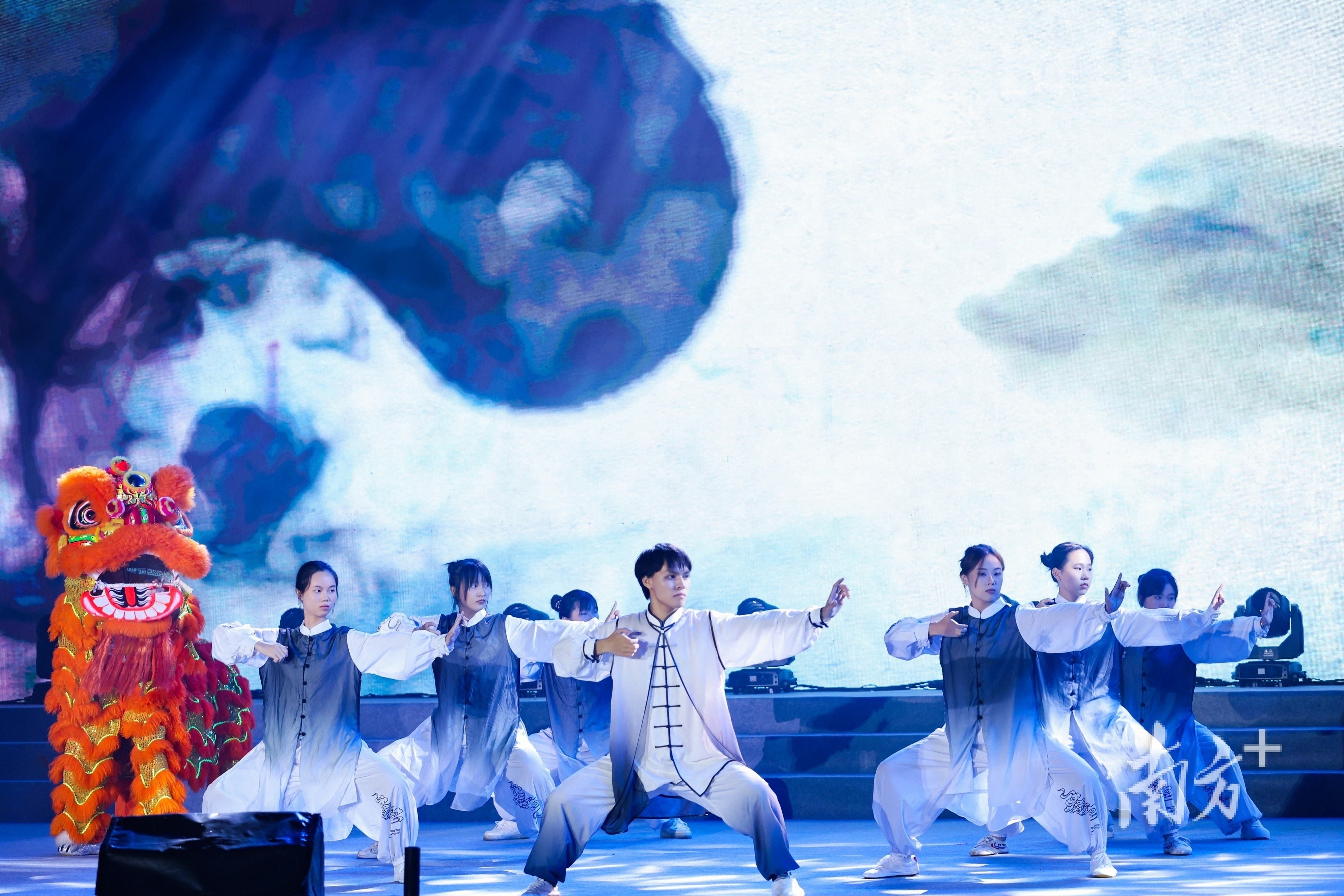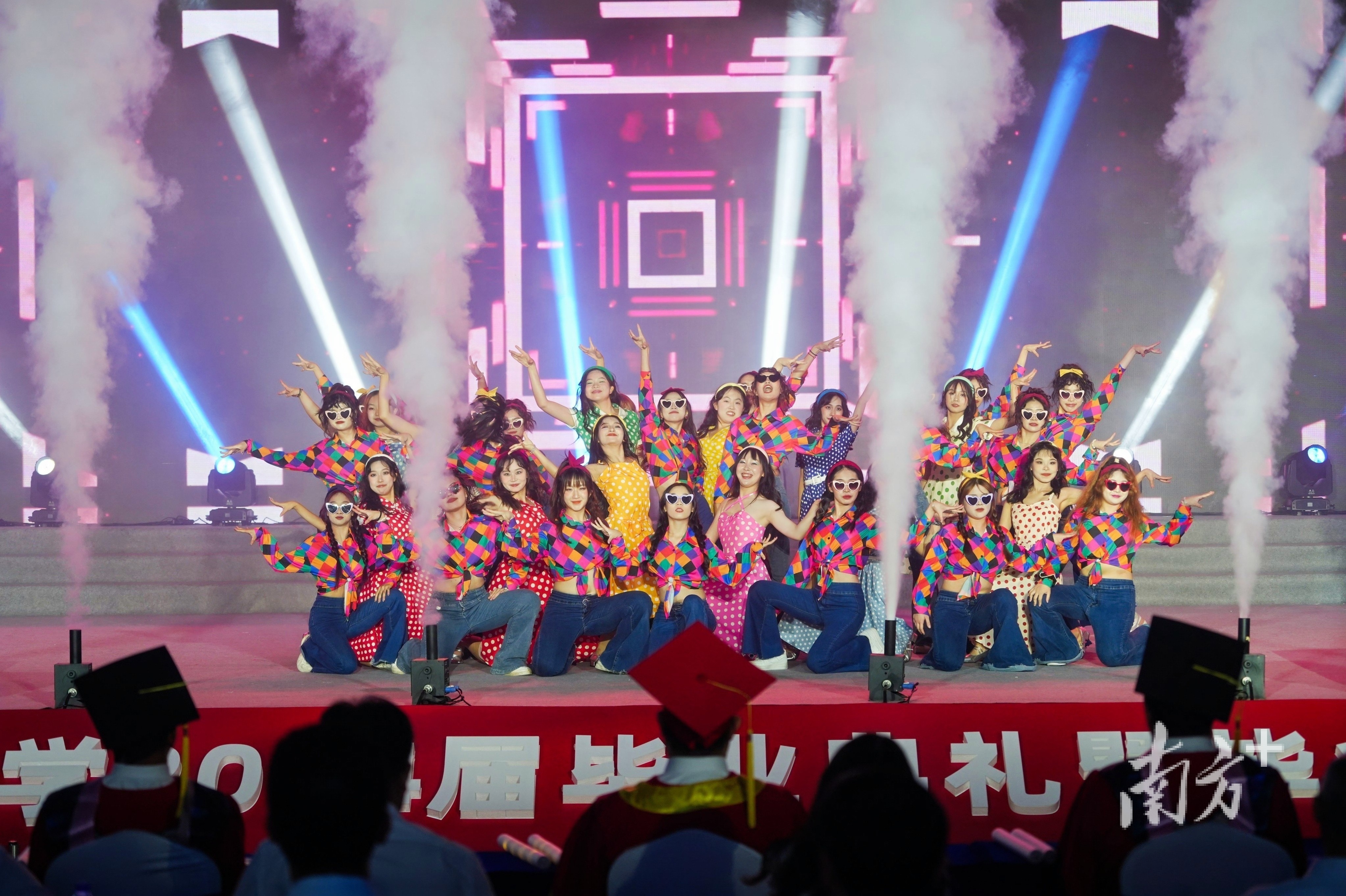 今年的佛山大学毕业晚会,不仅融入了以灯光秀形式呈现的校史回顾,还在舞蹈、武术、歌唱、乐器演奏等节目中加入不少岭南文化元素。