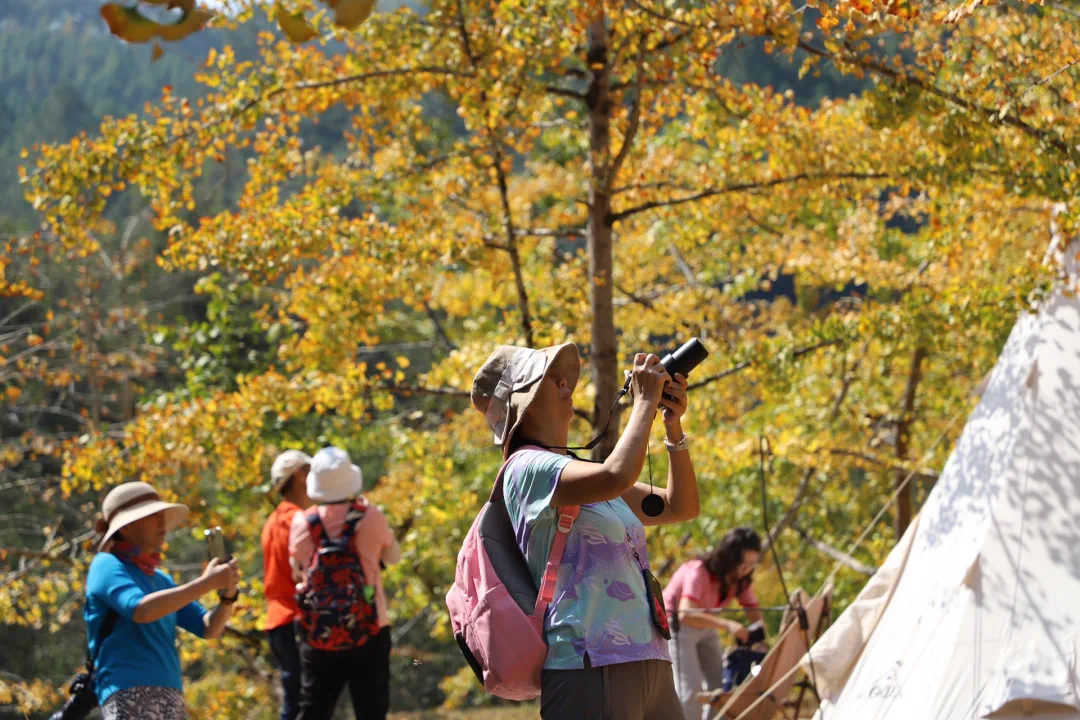 韶关南雄,帽子峰森林公园的小芳坪里, 不少银杏树叶已经泛黄。图源:广东文旅