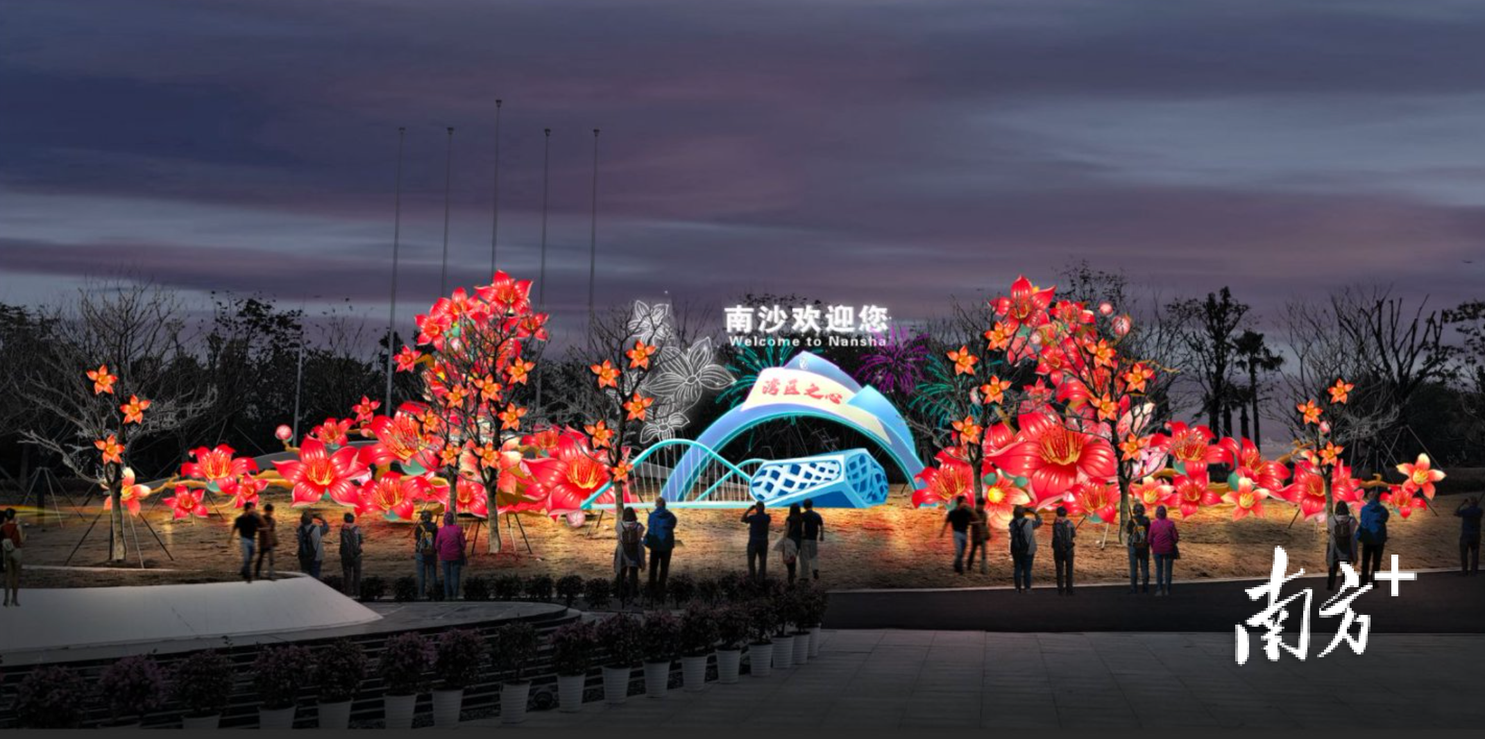 地处粤港澳大湾区地理几何中心的广州南沙,以灯为媒,在新的一年,举办集传统文化、创新科技于一体的璀璨灯会。以“光耀神州 华彩湾区”为主题,灯会用农历新年节庆为背景策划设计,将中国春节这一“世界非遗”与四川自贡灯会这一“国家非遗”相结合,采用现代科技与光影艺术,集中呈现大湾区开拓进取、开放合作的精神风貌。