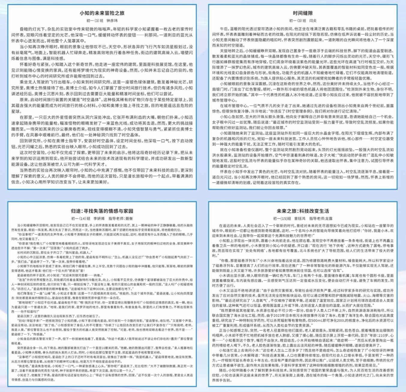 学校积极搭建平台,开展涵盖科普讲座、科技实践等多元活动的同时,还创新性地举办科幻作文比赛,为学生提供了一个独特的创意表达空间。在科幻作文比赛中,学生们充分发挥想象力,描绘出自己心中的未来科技世界,有的学生畅想人类在外太空的生活场景,有的构思智能机器人如何帮助人类解决环境问题。