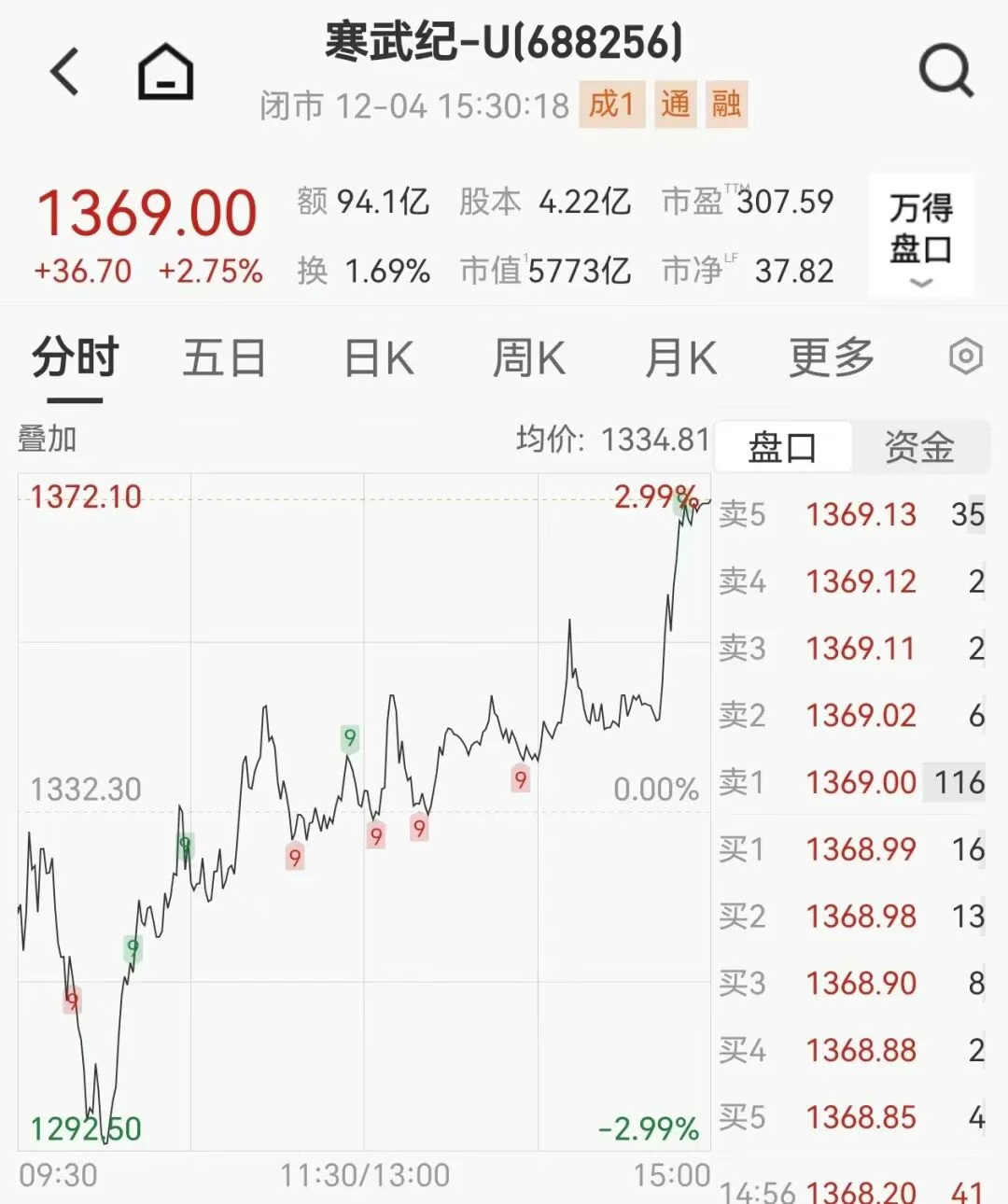 机器人、商业航天掀涨停潮,寒武纪尾盘急涨近3%