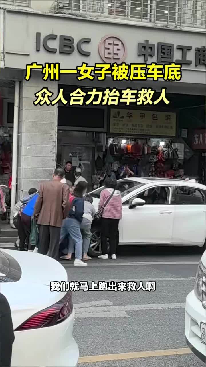 11月24日上午,广州市越秀区一德路发生暖心一幕:一名女士被压车底,近十名附近商户和路过市民合力将车抬起将其救出。目前伤者已被送往医院治疗。