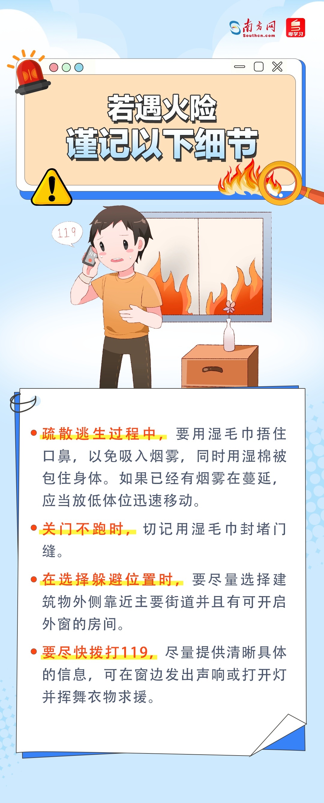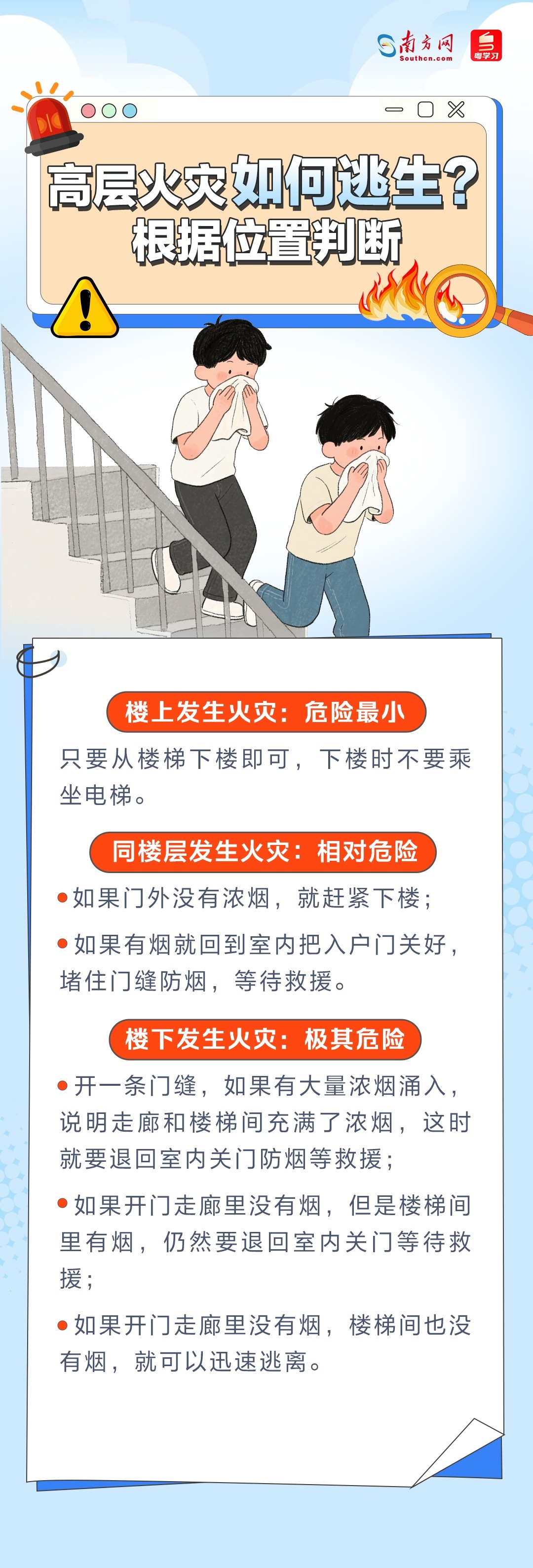 香港大埔发生五级火警,高层起火如何逃生?一组海报了解→|安全贴心话