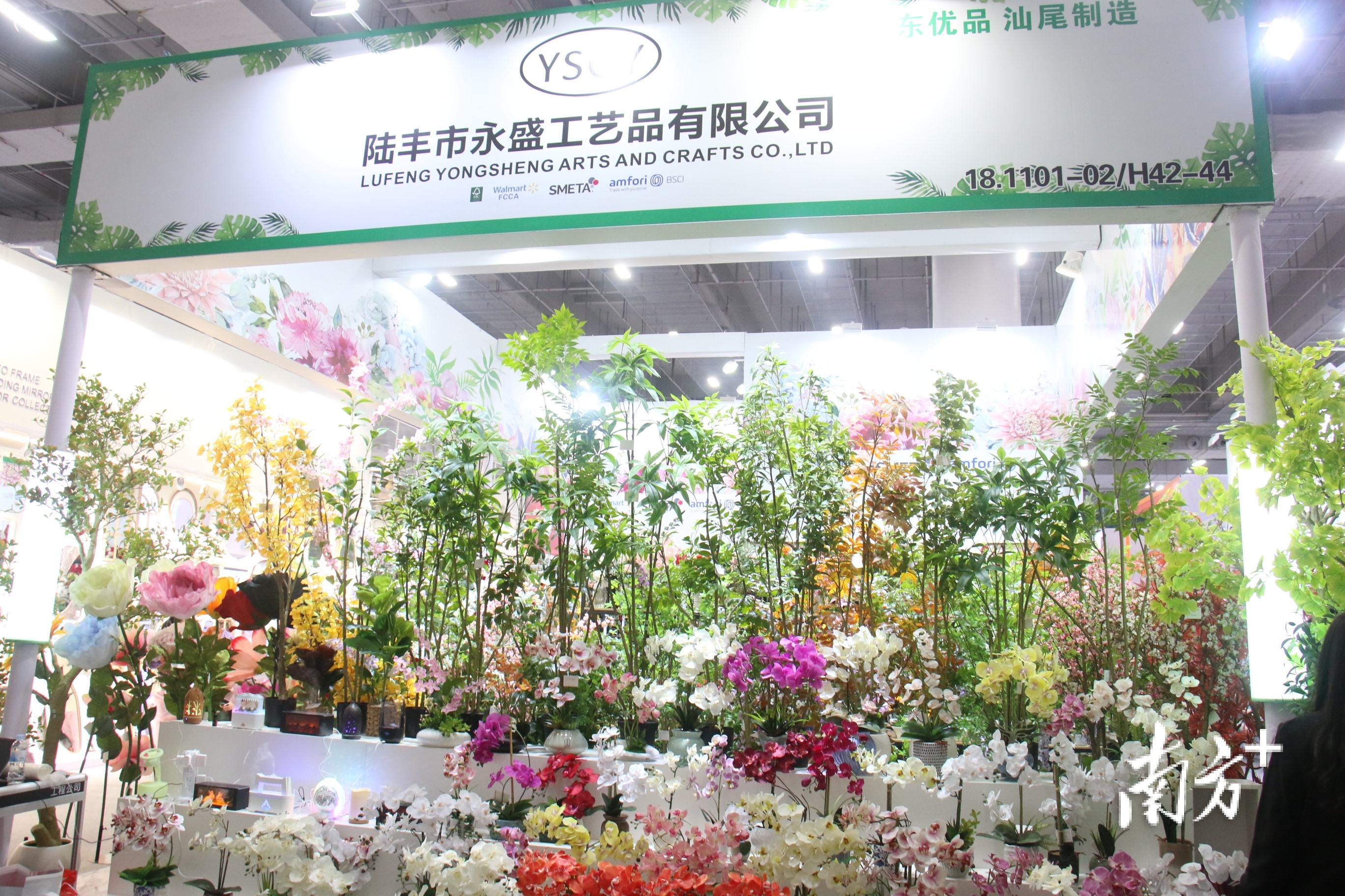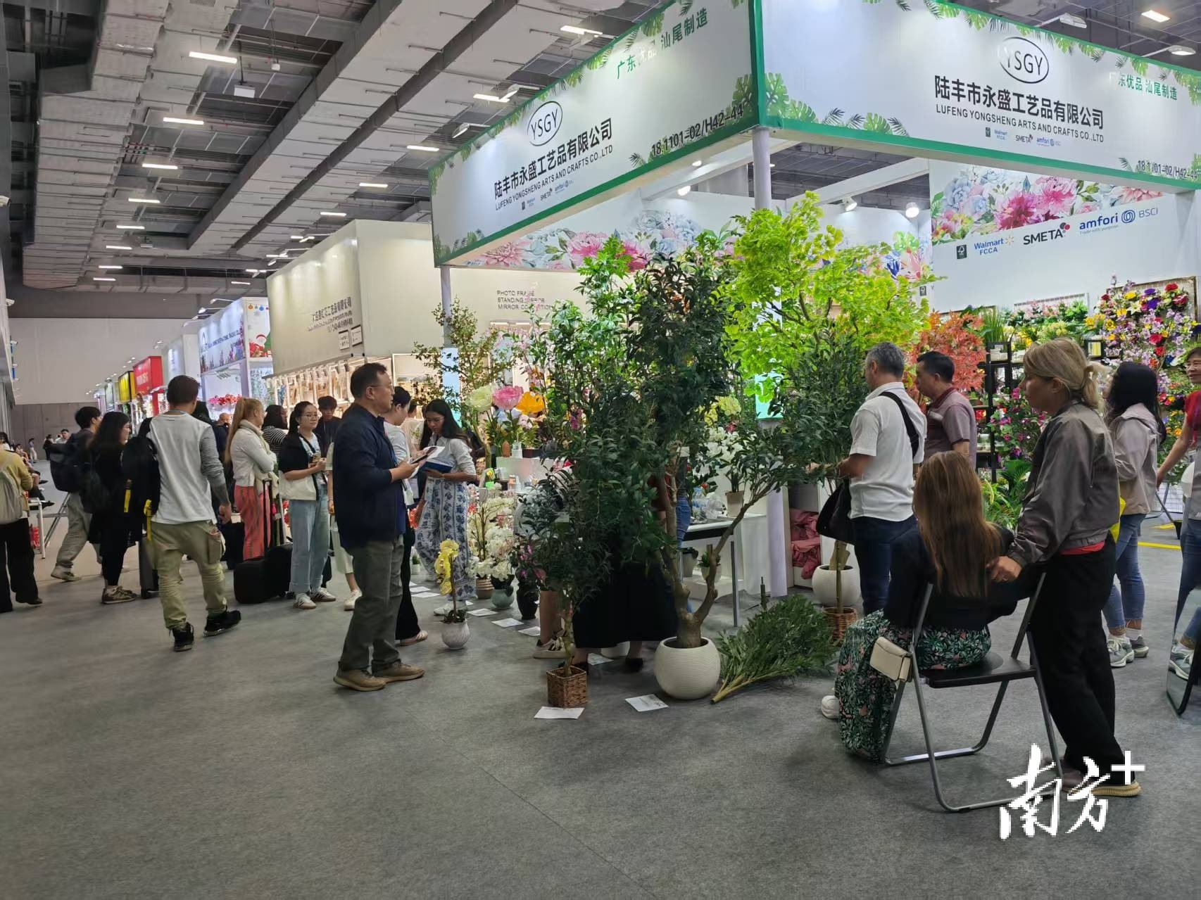 各色鲜艳的仿真花、栩栩如生的人造绿植、设计新颖的加湿器……走进陆丰市永盛工艺品有限公司展位,宛若置身于“绿野仙踪”,路过的境外采购商纷纷驻足拍照打卡。