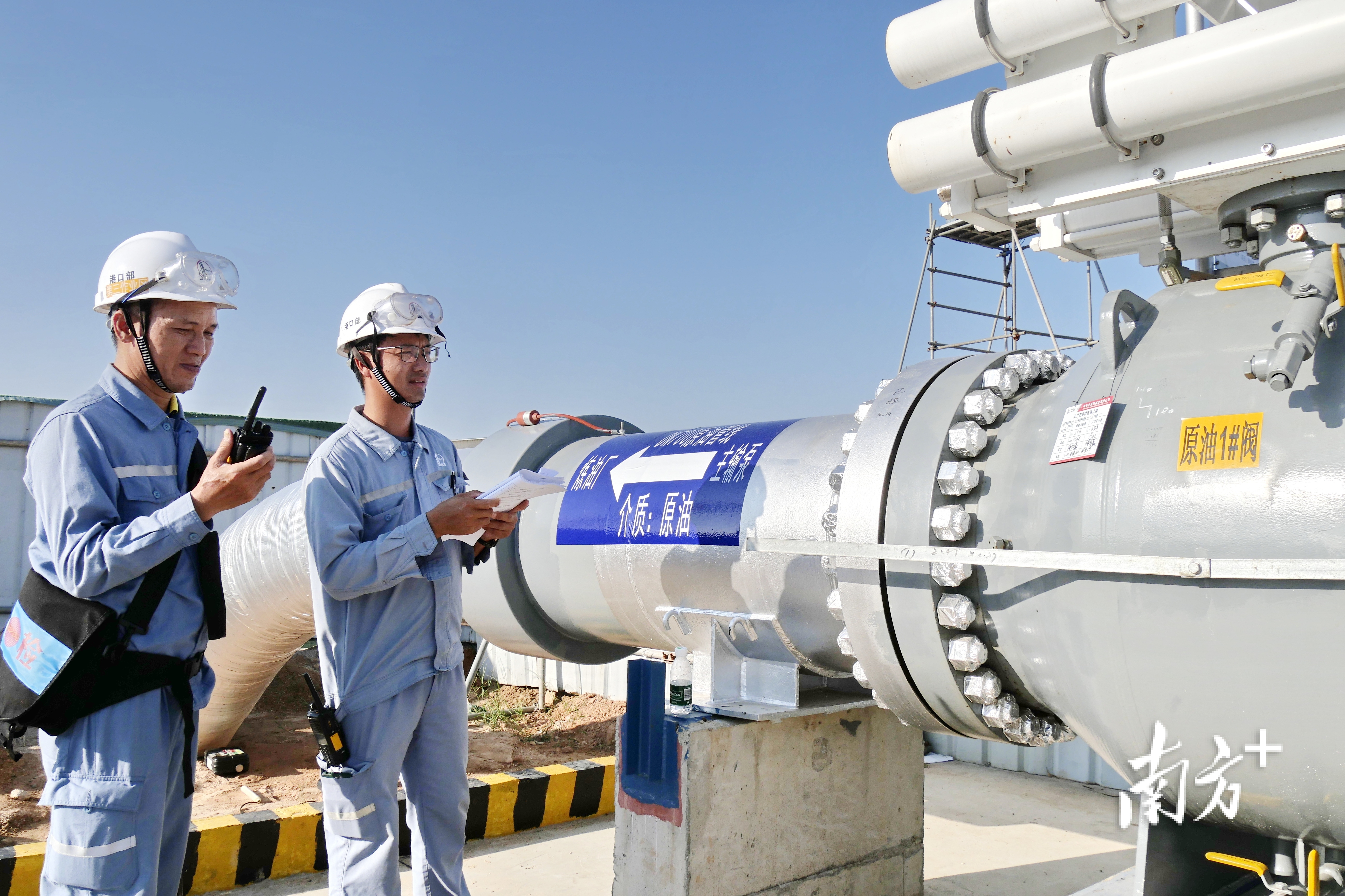 茂名石化员工巡检新建原油管线。柯裕清 摄