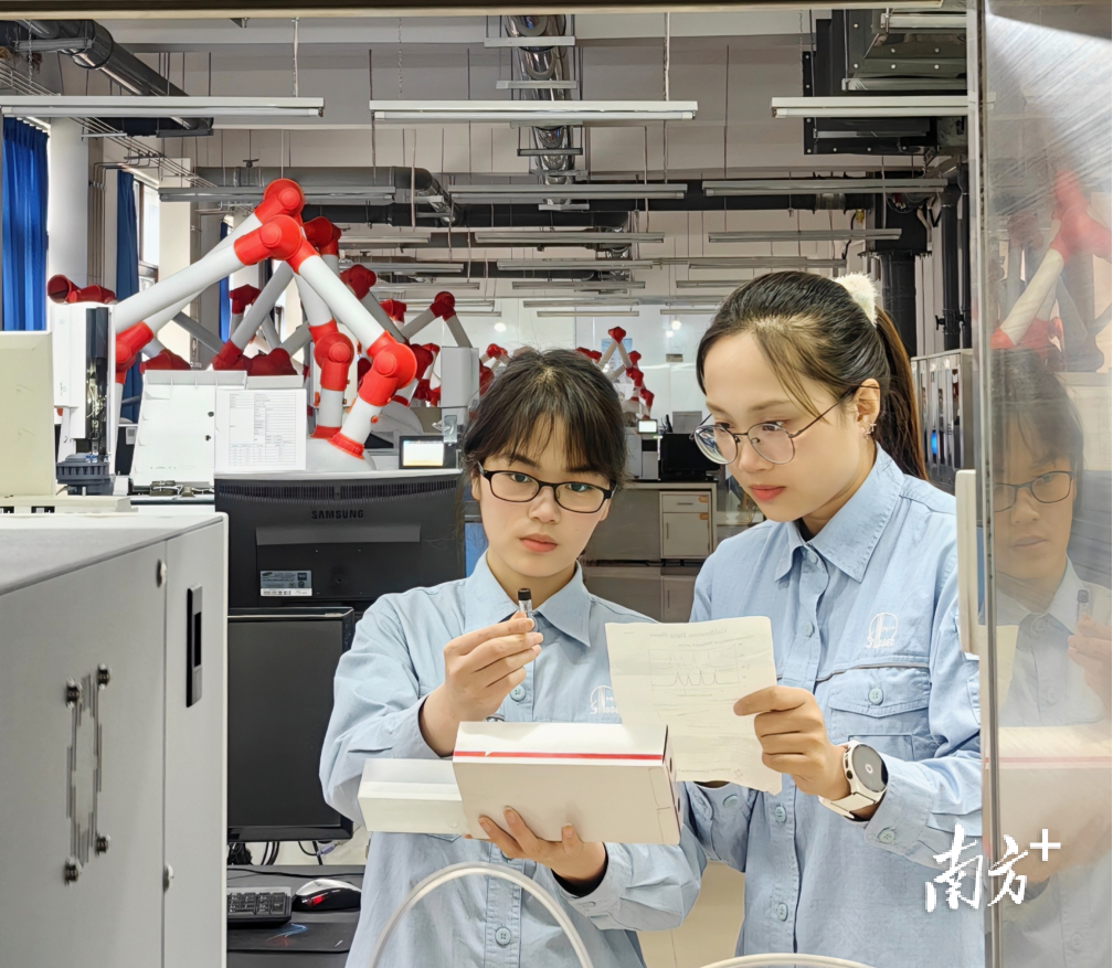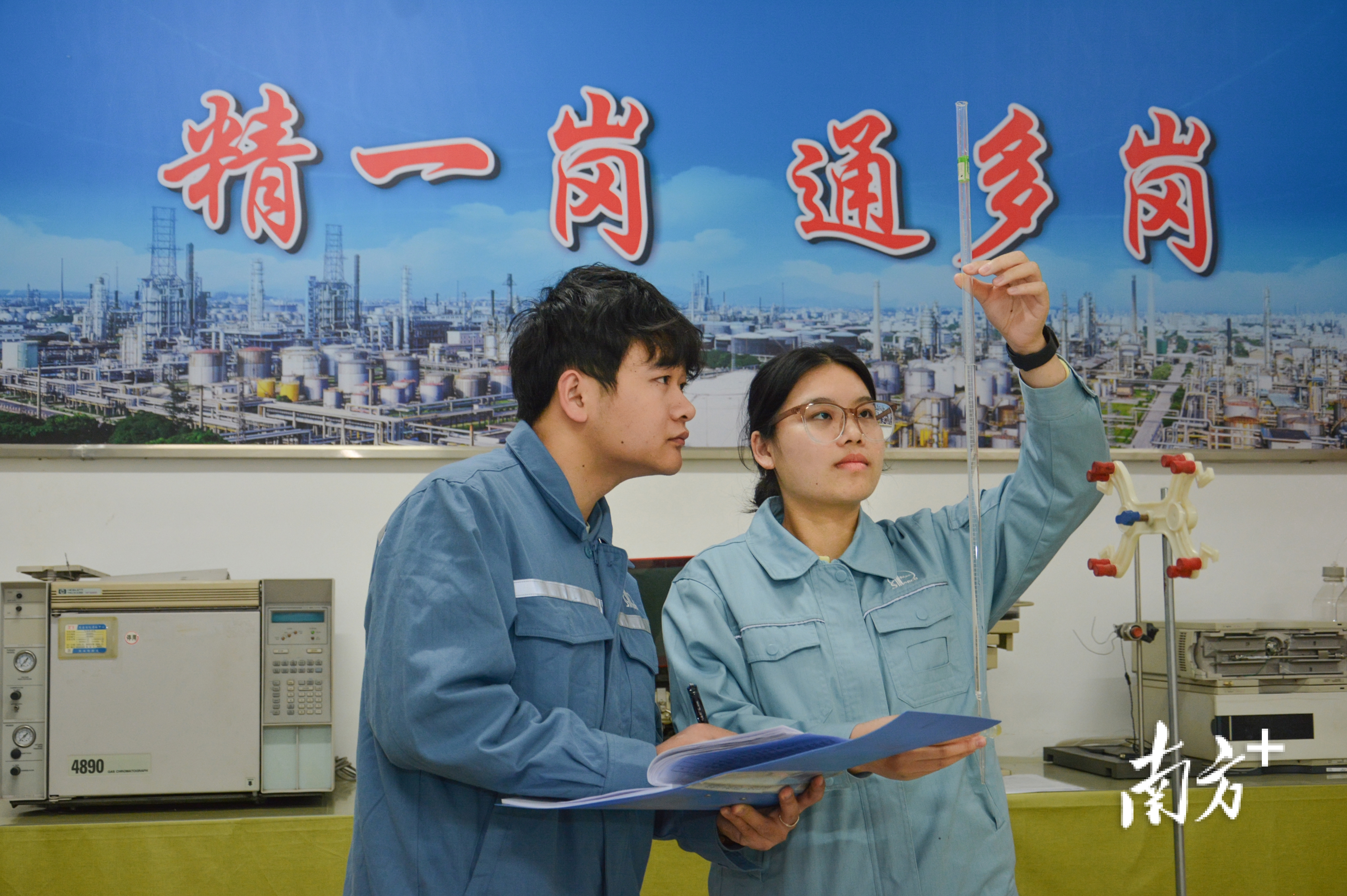 茂名石化科研人员在实验室对样品进行测试评价。杨峥 摄