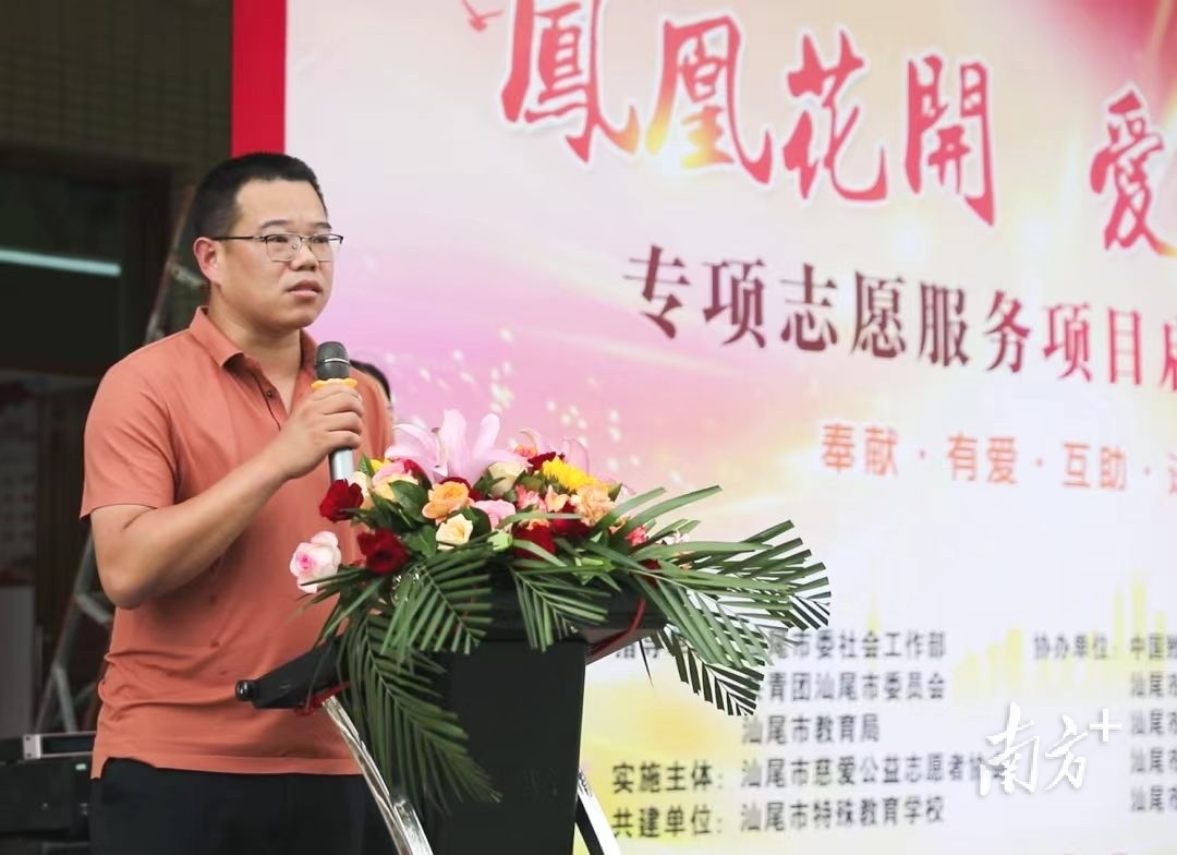 在汕尾的乡间田野,他带领志愿队伍,帮果农采摘青梅、打包发货;在红色遗址前,他与学生志愿者并肩而立,聆听老党员讲述峥嵘岁月;在社区服务一线,他俯身指导志愿者如何精准记录群众需求……十四年来,黄志丹始终扎根思政教育与志愿服务一线,以“志愿”为桥梁,将思政的暖流浸润汕尾的每一寸土地。