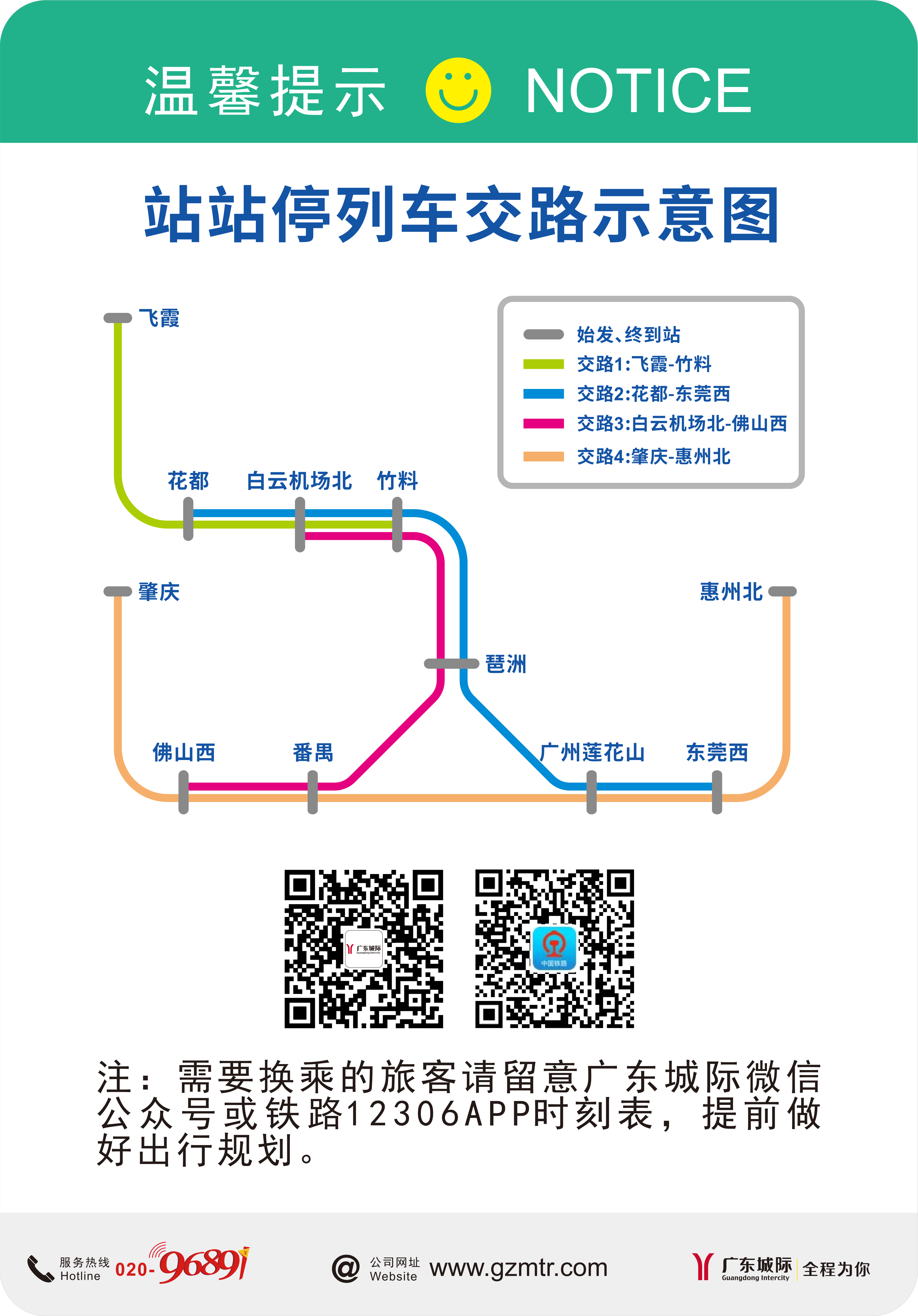 广东城际提醒,运行图调整后,列车开行时间将相应有所调整,旅客可通过“广东城际”微信公众号、12306等提前了解列车发车时间,预留充足换乘时间,以免耽误行程。