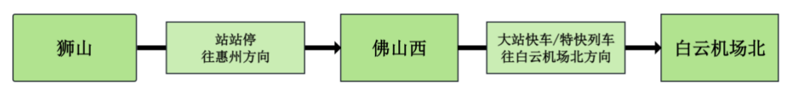 例如,从狮山站前往白云机场北站,在调整前,旅客从狮山站乘坐站站停列车直达白云机场北站,全程约需130分钟;启用新版运行图后,旅客则可选择在狮山站乘坐站站停列车至佛山西站需10分钟,在佛山西站换乘大站快车或特快列车前往白云机场北站需60分钟,全程乘车时间减少了约1小时。