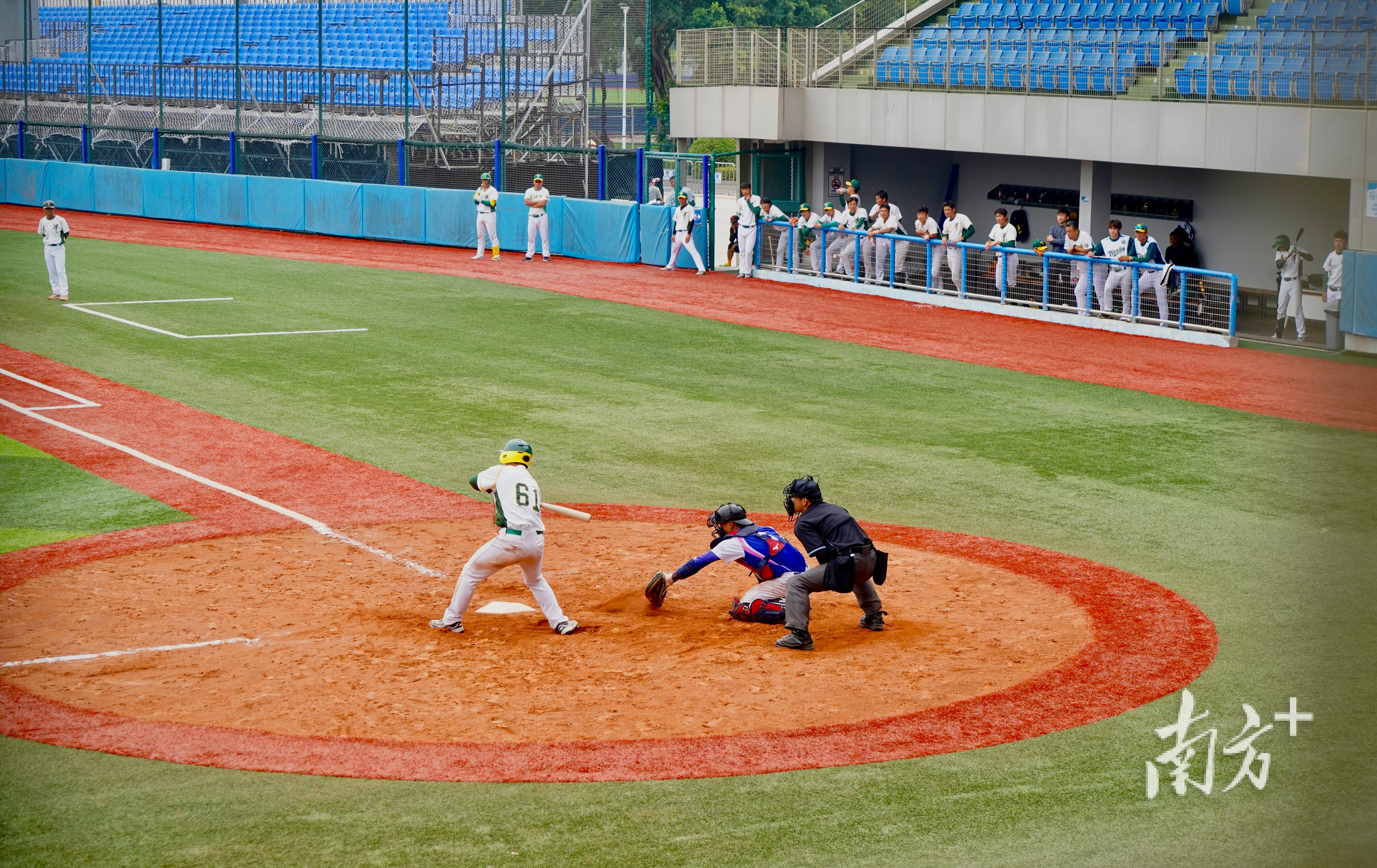 广东棒球队主教练王玮告诉南方+记者,为了备战十五运会,广东队已经在中山集训了一个月。“熊猫纪念球场是国际高标准球场,近期我们在这里训练,场馆方和当地政府都给了我们很多支持。本届全运会广东队是‘主场作战’,我们也想在家乡父老面前拿出好的状态。”广东棒球队队员、投手孙易聪表示,棒球是一项团队运动,主场作战也会给队员们带来更强的信心,“我们肯定是希望能把冠军留在广东。”