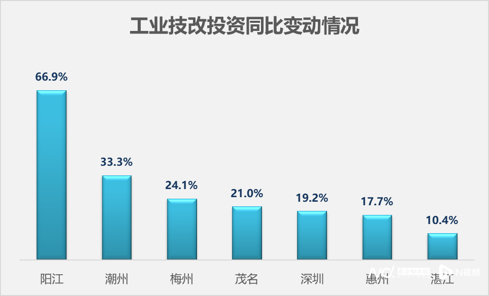 投资和消费是推动经济增长的两大驱动力。在投资方面,受大规模设备更新政策等支持带动,阳江、潮州、梅州及茂名等地市工业技改投资增速均超过20%。
