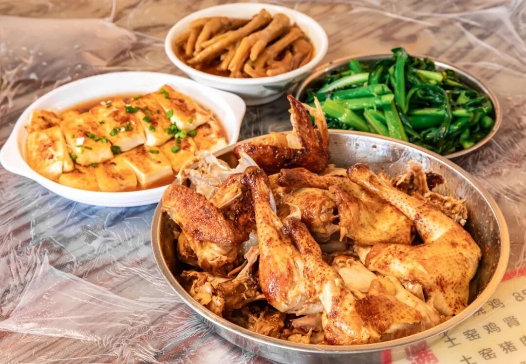 窑鸡选用当地养殖150天左右的走地鸡,食百草、饮山泉,放养于草地山间。将腌制后的走地鸡放入窑中,用荔枝木烧制烤熟,这样烤出来的鸡有一股淡淡的果木香。
