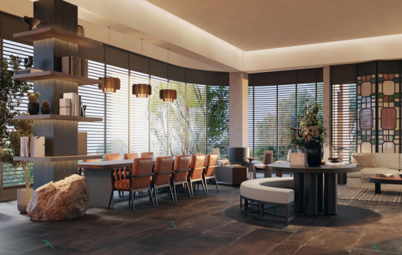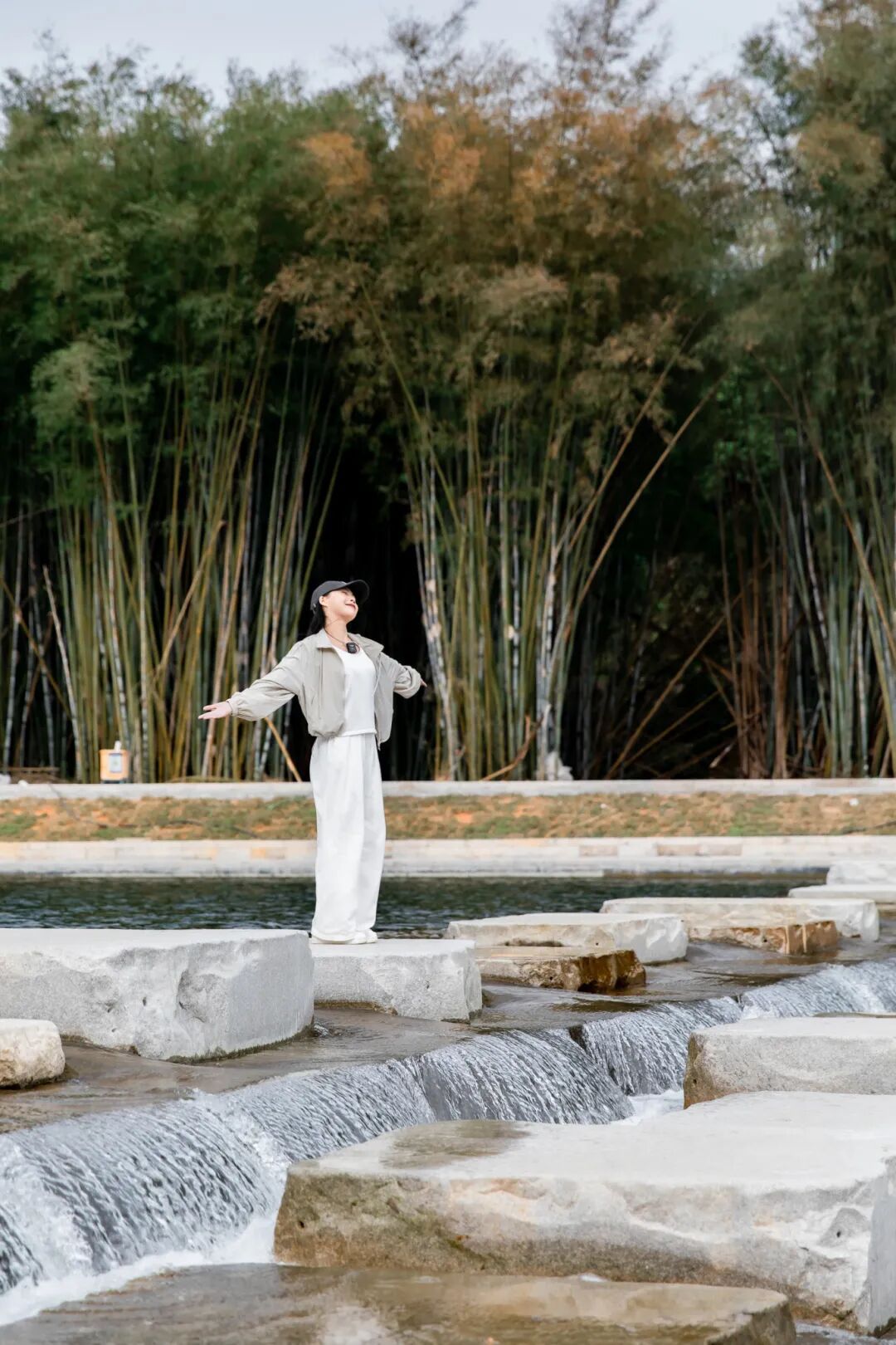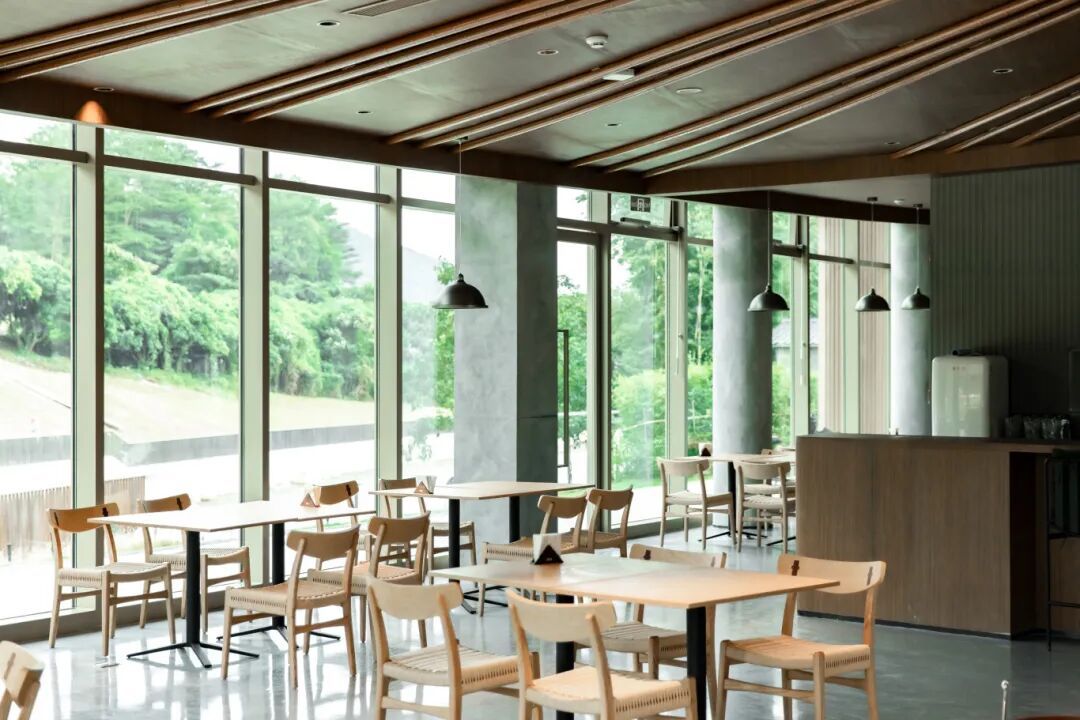 走进这里,室内与自然的边界悄然消融。你可以随意拣一处坐下,抬眼是溪光潋滟。风从水面拂来,裹着竹叶的清新和浅浅的水汽,掠过脸颊,也轻轻掀动天幕的一角。