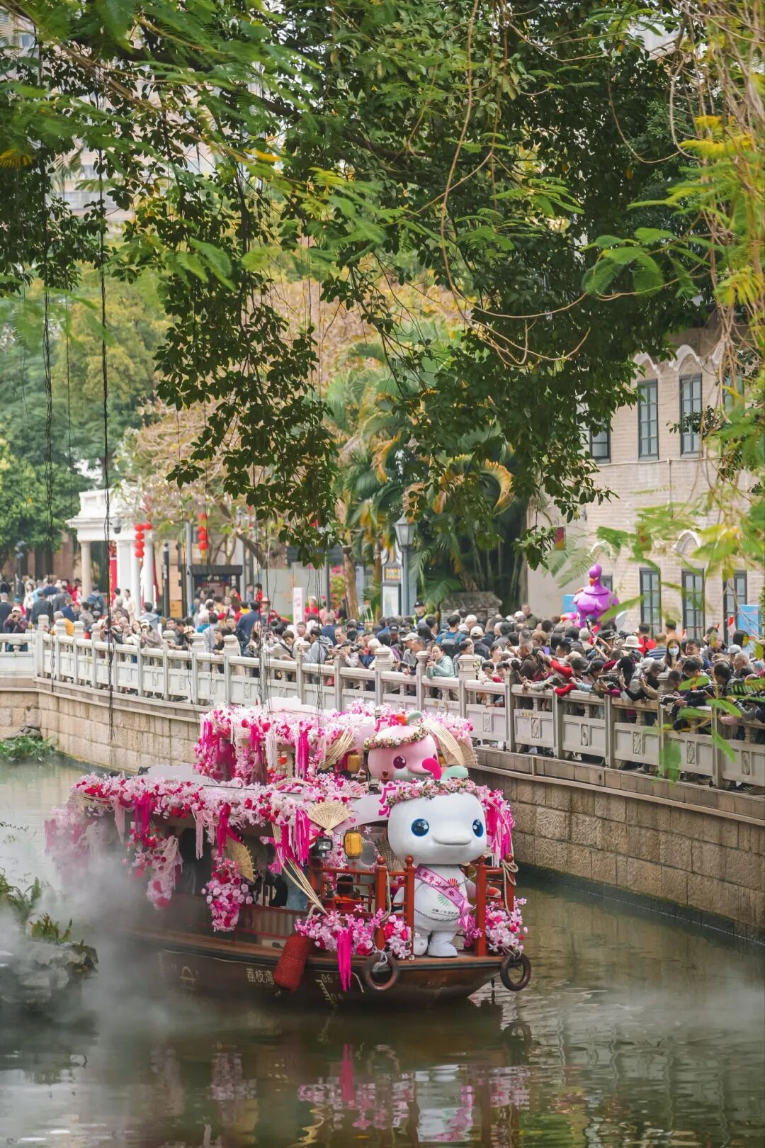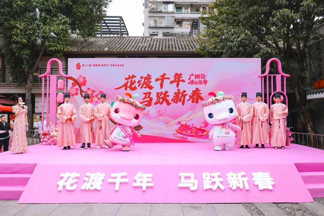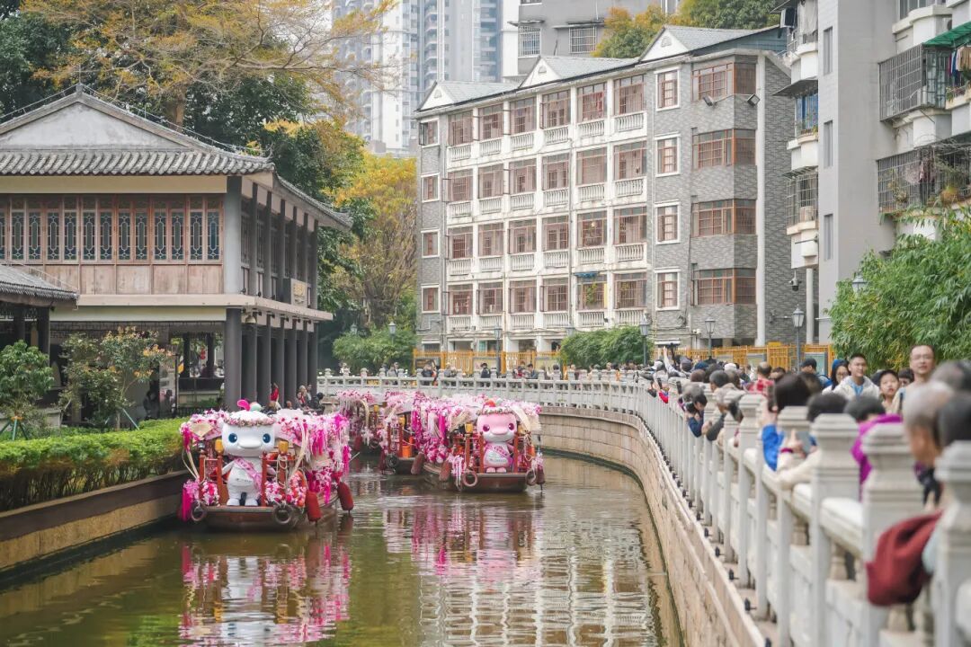2月12日至14日,第十六届“荔枝湾·新西关”民俗文化活动之2026年广州水上花市在广州西关永庆坊旅游区举办,“喜洋洋”和“乐融融”喊您来买花!