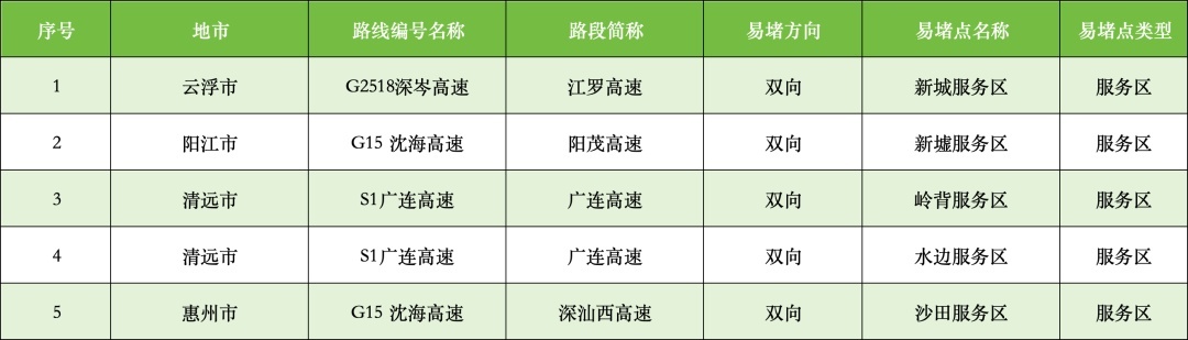 以下这些路段易拥堵