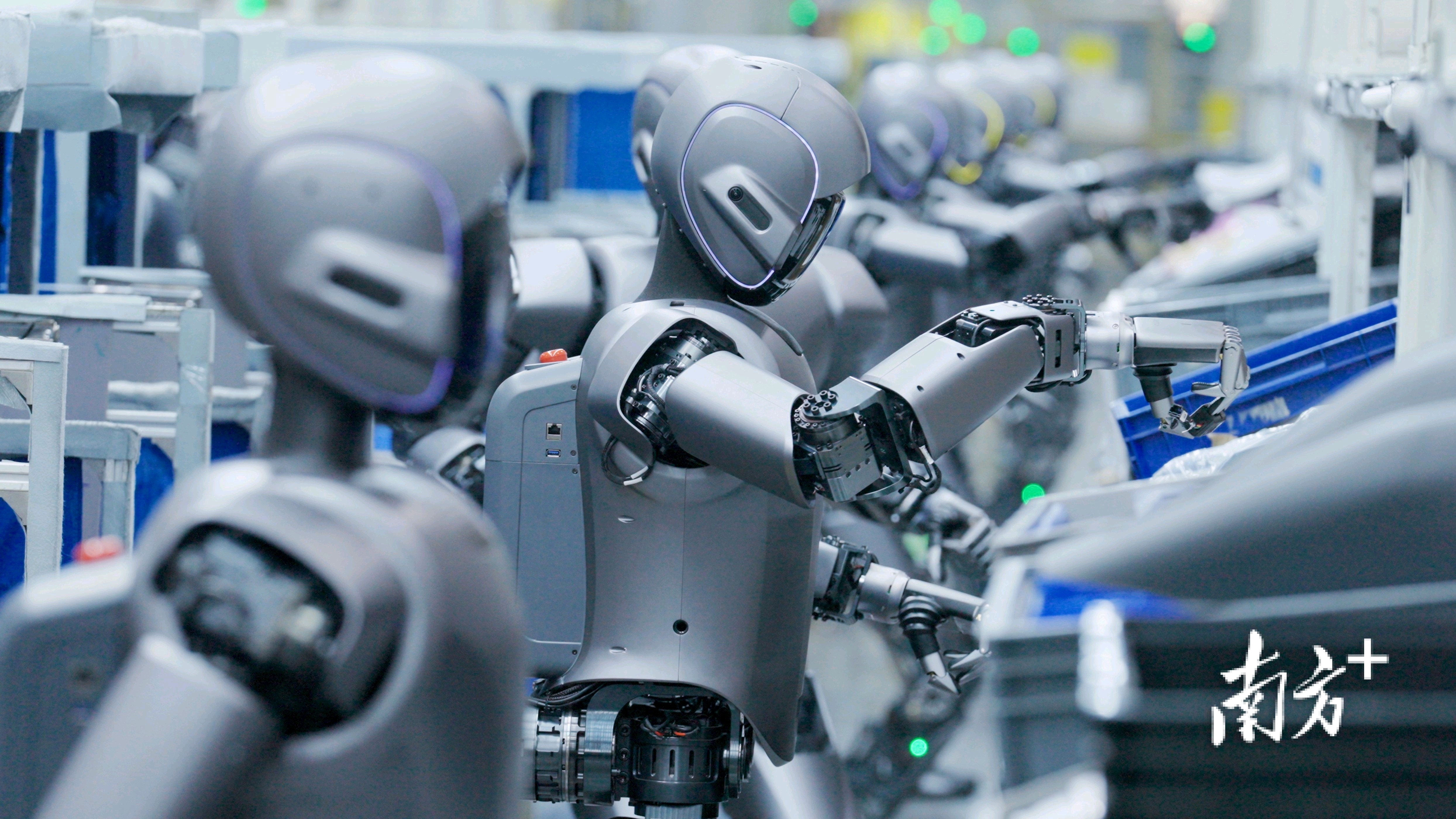2025年3月,数十台优必选工业人形机器人Walker S1开展了全球首例多台、多场景、多任务的协同实训。(图源:优必选)
