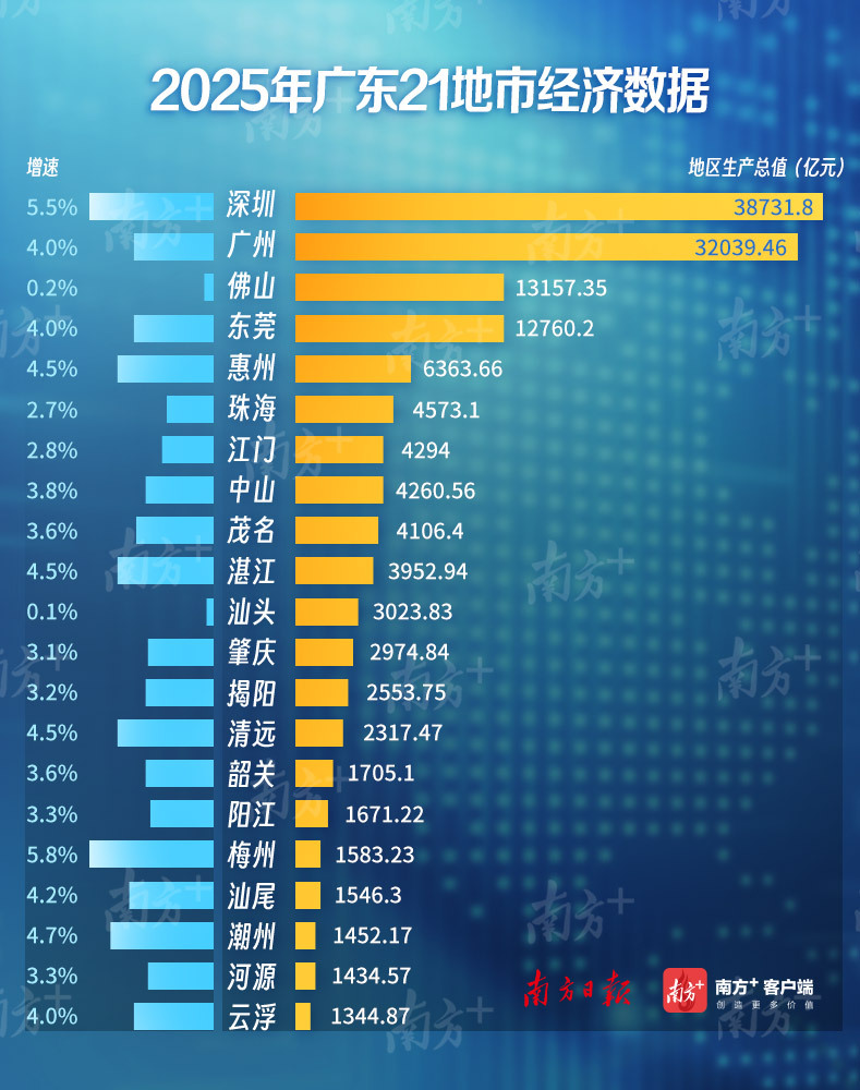 2月5日,广东21地市2025年经济数据悉数出炉。