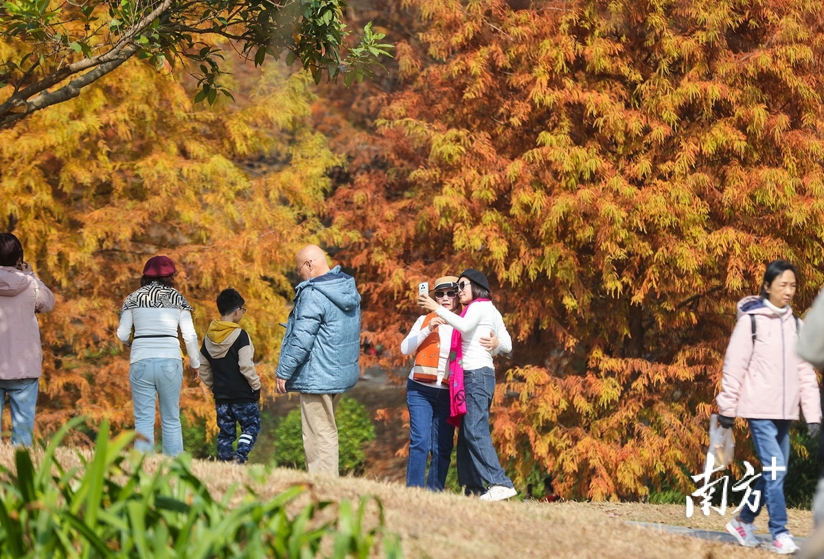 成片的落羽杉纷纷褪去翠绿,换上艳丽的“红妆”。 南方+ 叶志文 拍摄