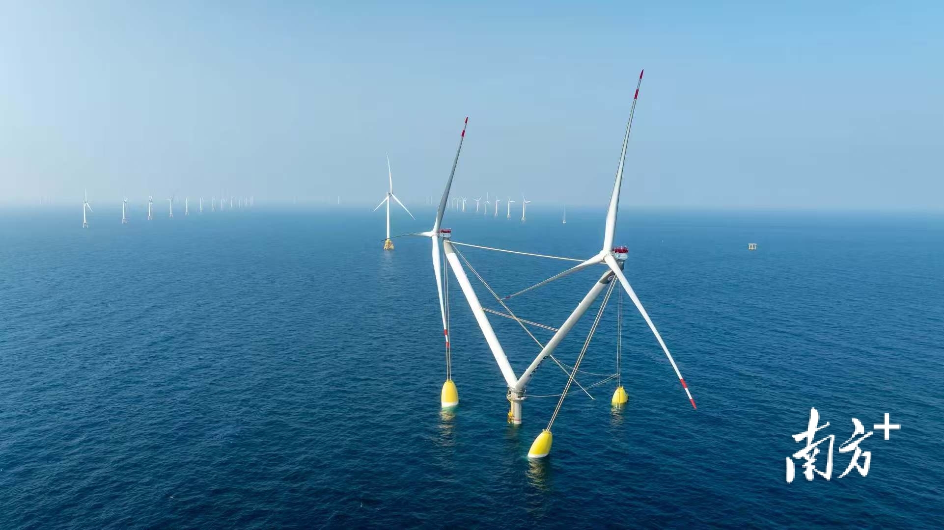 全球唯一“一平台两风机”漂浮式风机在阳江并网。资料图片