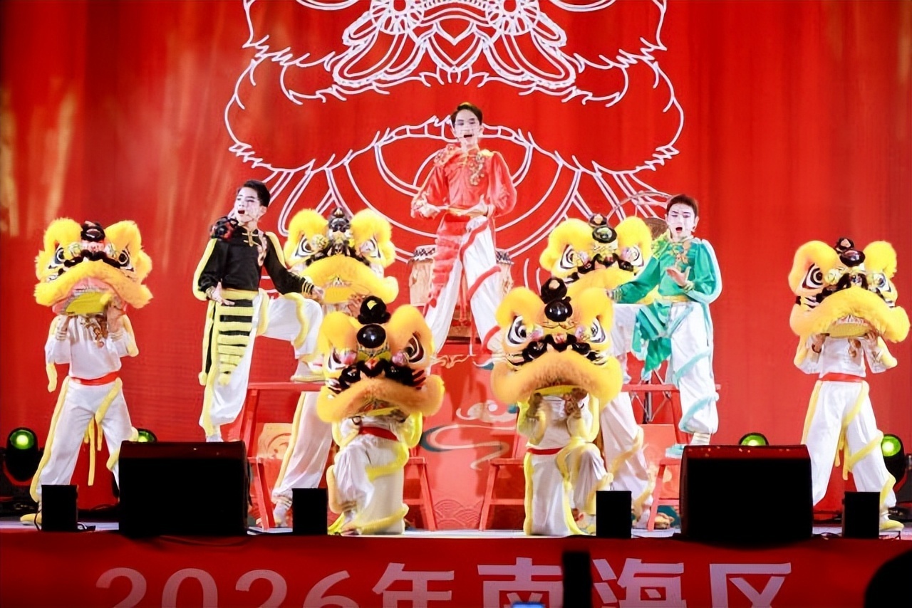 1月30日,佛山大沥“粤美村晚”表演中,当地学生将醒狮元素融入节目编排,让传统艺术焕发新的活力。