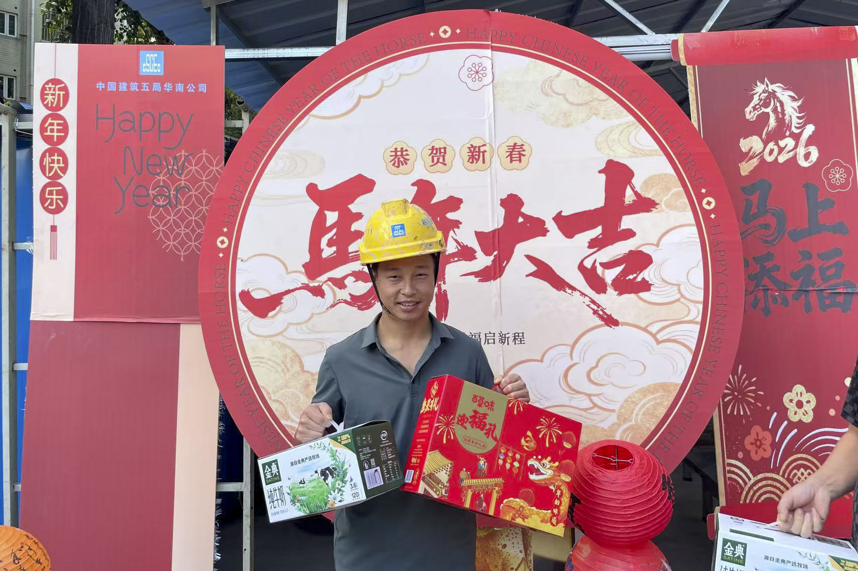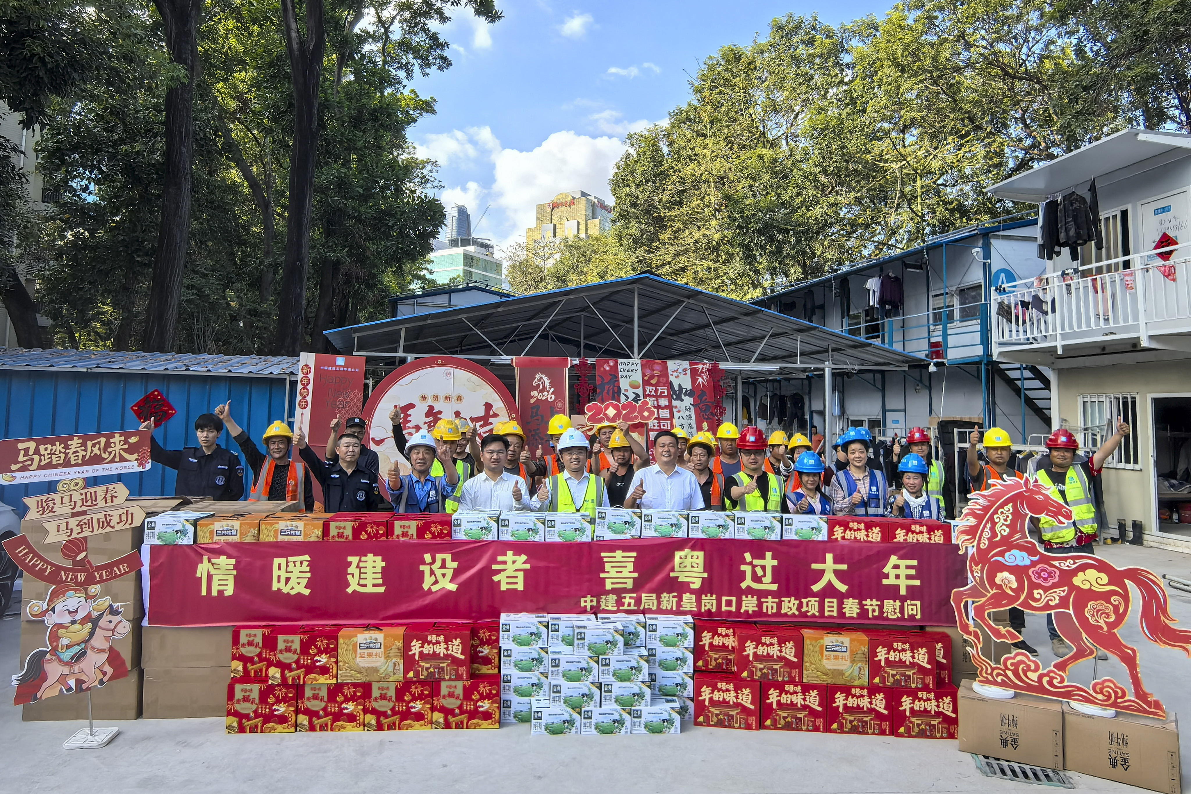 2月16日,农历腊月二十九,除夕。在中建五局新皇岗口岸联检大楼市政工程项目现场,200余名一线建设者欢聚一堂,共庆佳节。