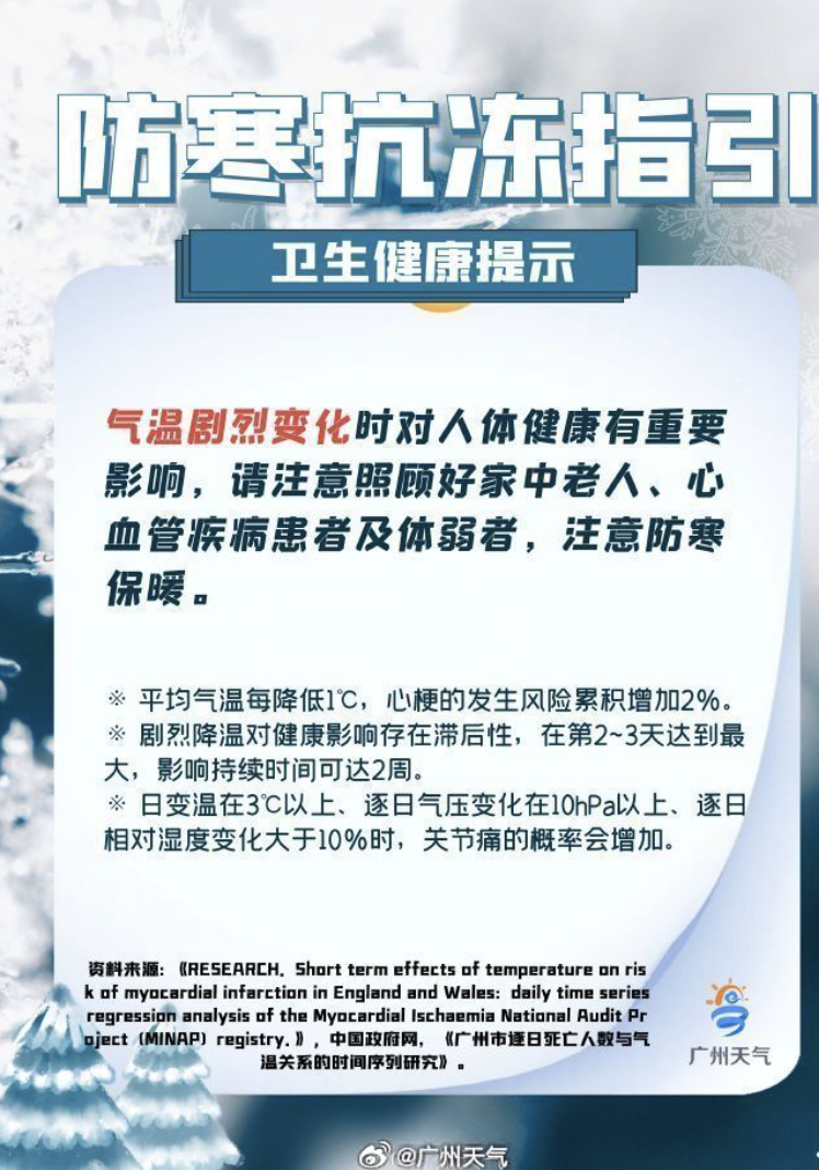 26日早晨出现过程最低气温8~10℃;其中24日夜间至25日早晨广州北部伴有小雨,中南部有零星小雨。