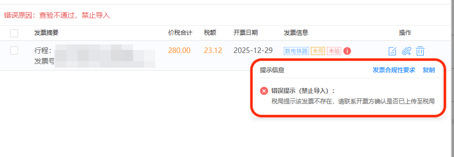 部分铁路旅客在报销发票时,出现“该发票不存在”的提示,导致无法正常报销。