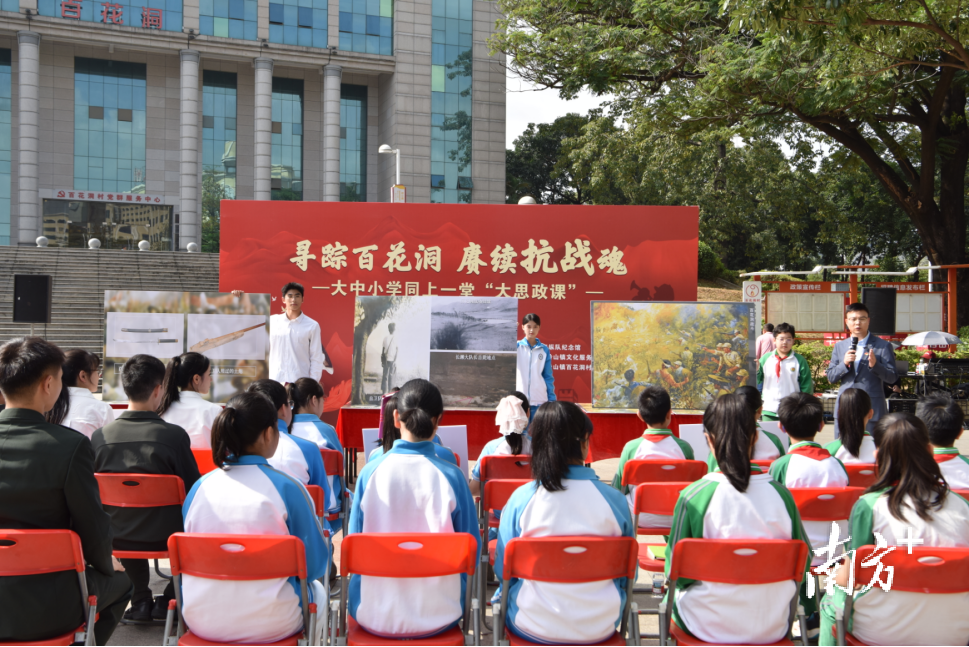 活动最后,全体学生齐声高唱《没有共产党就没有新中国》,激昂的歌声在历史遗址上空久久回荡。这堂“遗址里的思政课”通过创新形式与深度体验,不仅打破学段壁垒,还实现知识传授、情感共鸣与价值引领的有机统一,为推进大中小学思政课一体化建设、用好用活本土红色资源提供了“东莞方案”。
