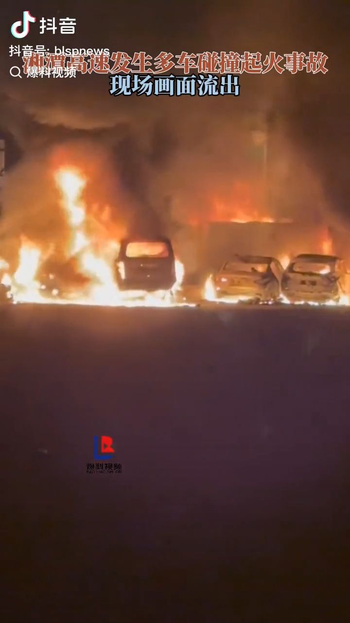 1月11日早晨,有网友发布视频,1月10日晚,湖南醴娄高速湘潭县段(属G60沪昆高速湘潭段)发生一起多车碰撞事故,多辆车辆随后起火燃烧。从网友拍摄的现场画面中能看到,起火的车辆将该路段东往西方向的道路完全堵住,导致交通通行受到影响。