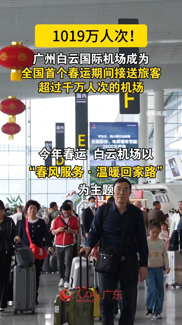 春运39天(2026年2月2日至3月12日),白云机场累计接送旅客1019万人次,成为全国首个春运超过千万旅客的机场,创历史纪录;今年春运期间,上千万旅客从这里出发、抵达、中转,把团圆、返工、出游、跨境的脚步,汇成中国春运最繁忙的空中动脉。
