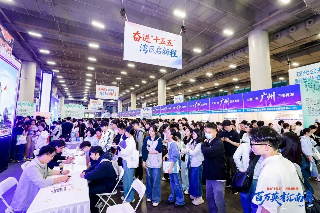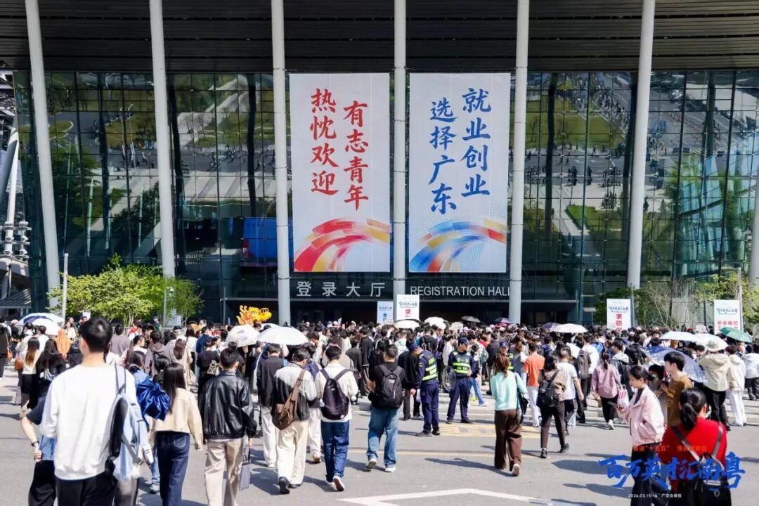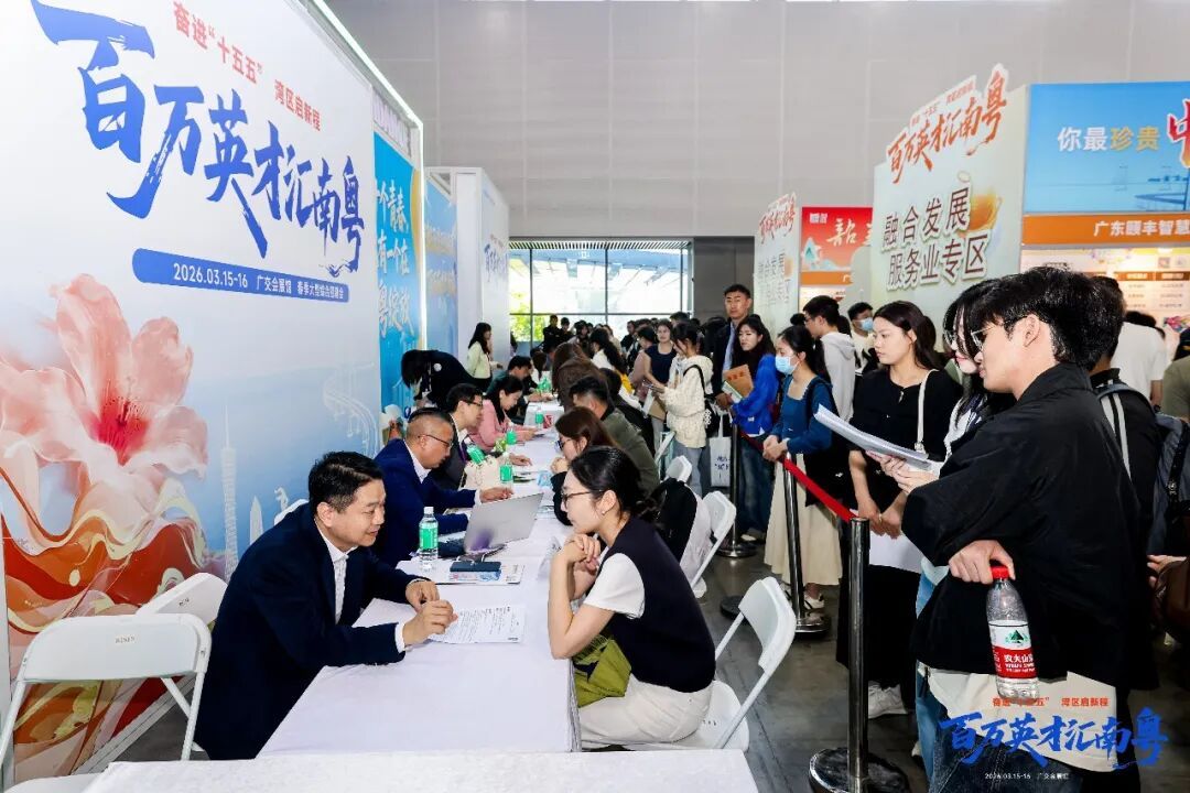 “百万英才汇南粤”2026年春季大型综合招聘会盛大开幕,现场人潮涌动、青春飞扬。活动首日就有近12万名求职者入场。